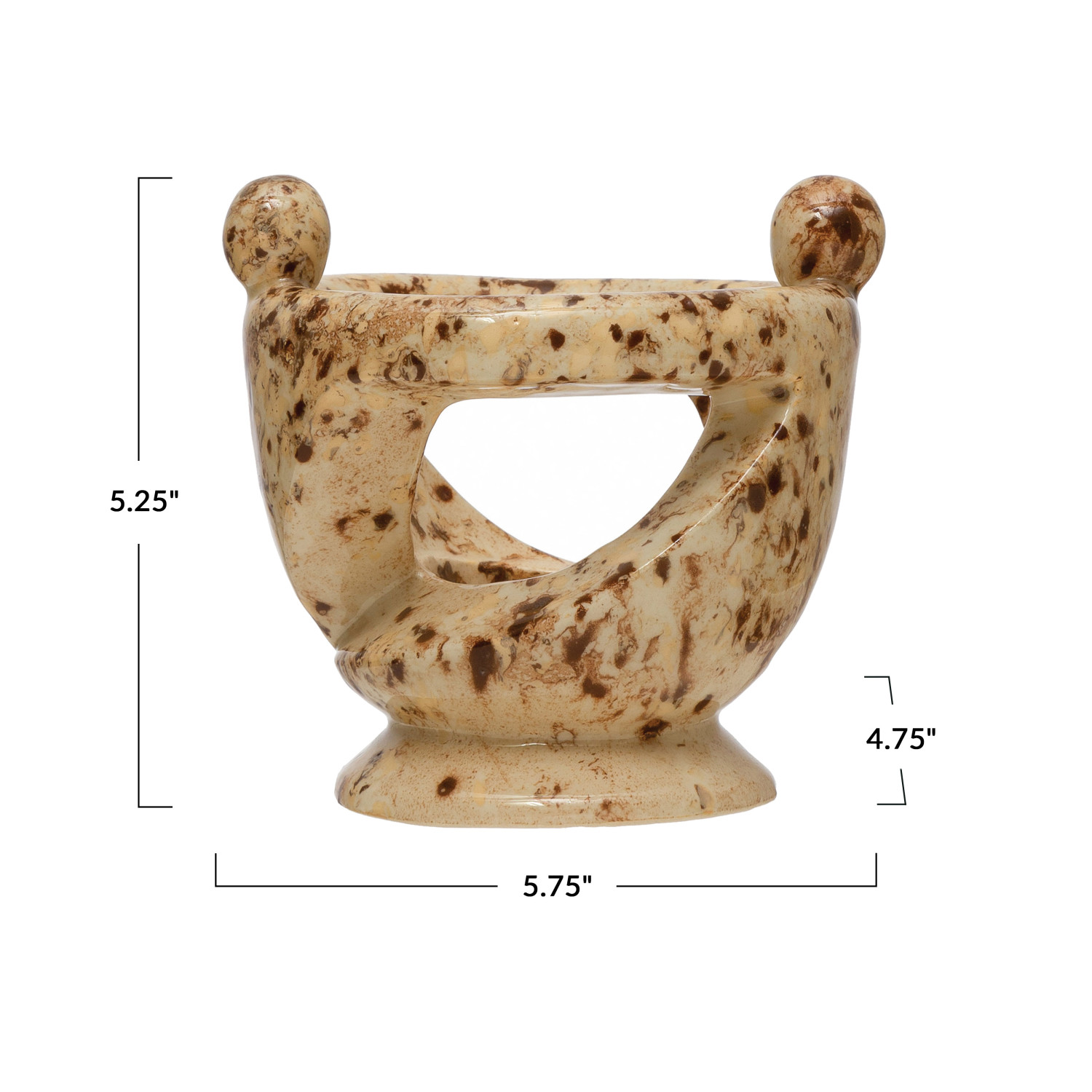 This romantic tealight holder features a minimalist hand in hand stoneware sculpture in a unique reactive glaze. Stoneware hand in hand tealight holder in reactive glaze finish. Create the ultimate tablescape with this thoughtfully crafted candleholder. Display this stylishly versatile candle holder as a sophisticated mantel accent or inviting dining table centerpiece.