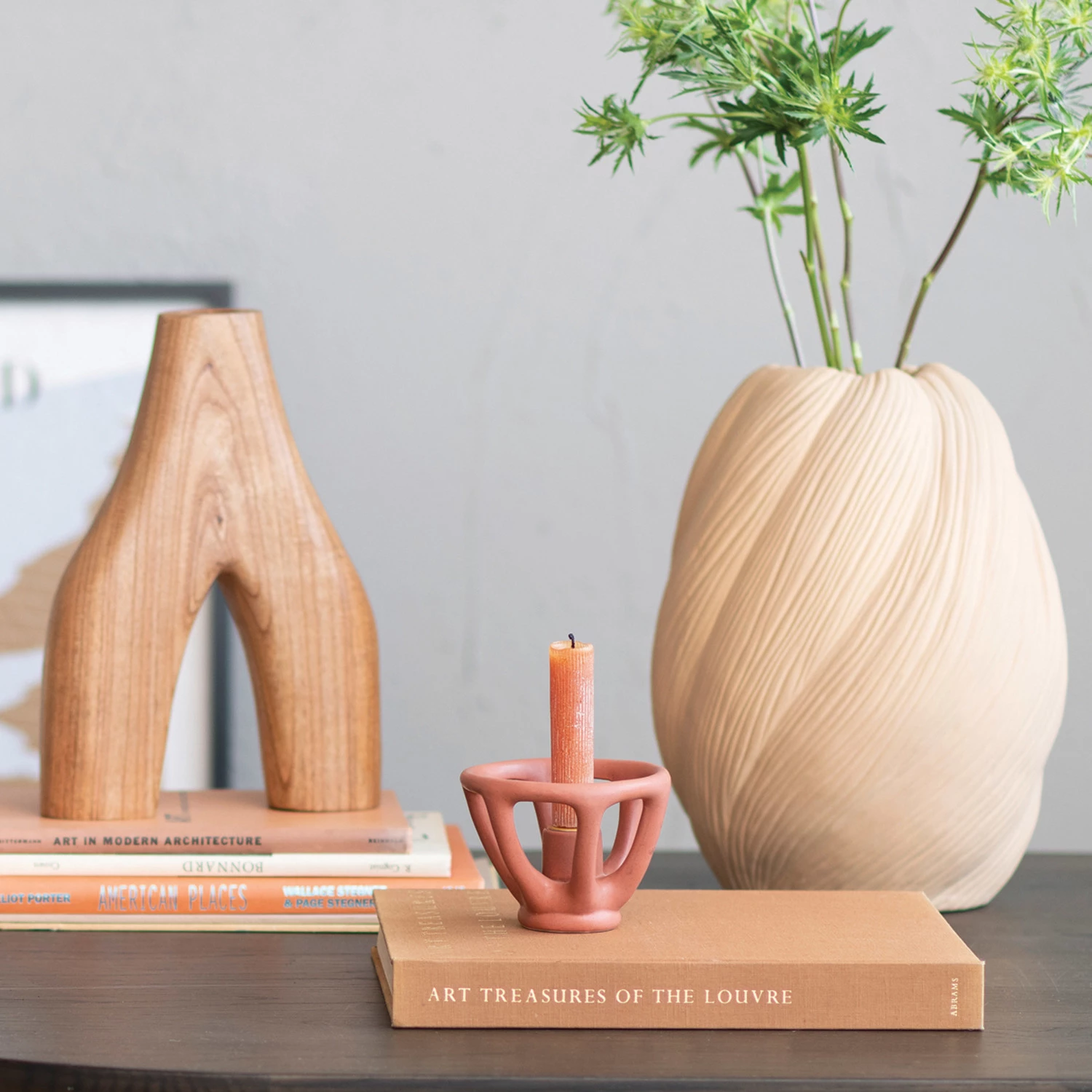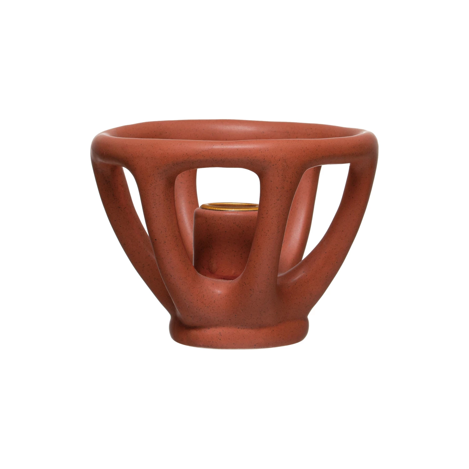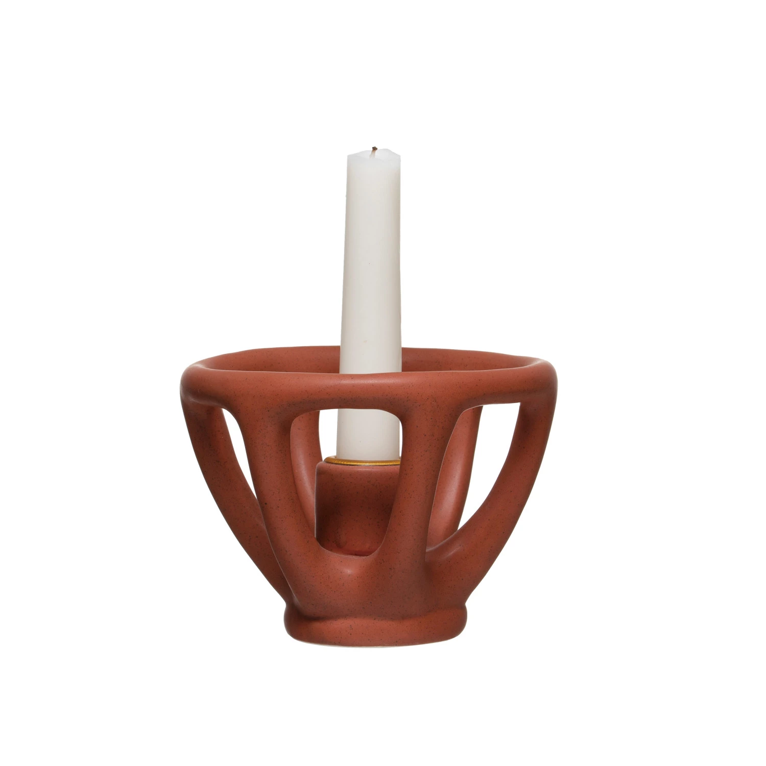 Catalog Name: 4-3/4" Round x 3-3/4"H Stoneware Taper Holder, Terra-cotta Color