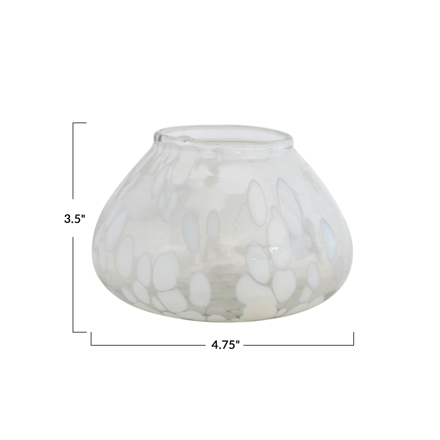 Catalog Name: 4-3/4" Round x 3-1/2"H Art Glass Tealight/Votive Holder, White