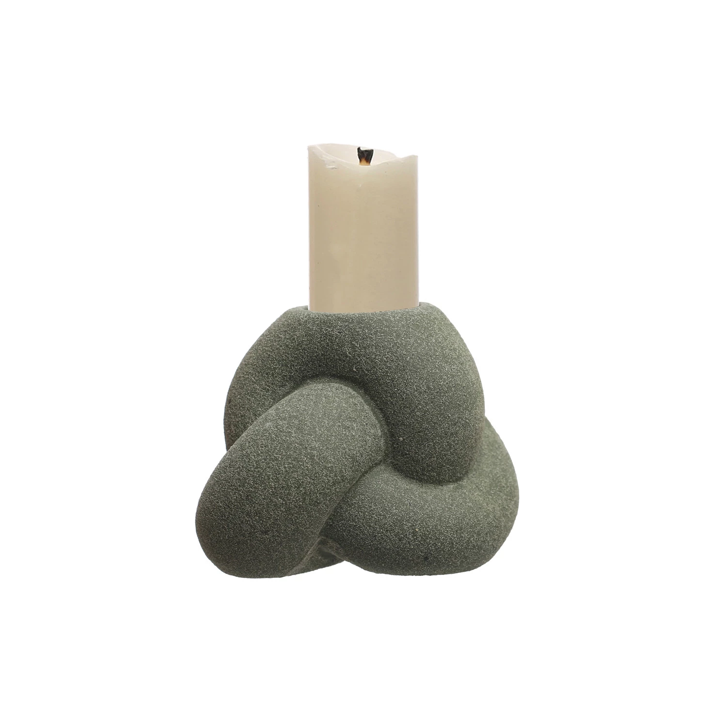 Elegant and versatile, the candle holders offered are more than mere accessories; they serve as expressions of one's style and mood. Crafted from various materials such as metal, glass, and stoneware, these candle holders boast a range of designs that effortlessly complement any decor. With the ability to accommodate an array of candle types, from tea lights to pillars, they prove to be both user-friendly and easy to maintain. Intended for use in any room where the soothing radiance of candles is desired, these holders are thoughtfully designed to elevate the ambiance and create a captivating atmosphere. Whether aiming to cultivate a romantic, cozy, or festive setting, these candle holders are well-equipped to assist. Browse through the exquisite collection to discover the perfect pieces that will illuminate space with elegance and charm. With these candle holders, the home or event will be transformed into a captivating haven. Small and versatile candle holder made of stoneware with a sand finish in green, can hold both tealight and taper candles. Ideal for stony and rustic aesthetics, matches well with shades of green that are often found in natural or earthy spaces. Can be used in different settings, such as dining halls, romantic environments, and coffee houses, and can create a cozy and inviting atmosphere. Made from pure stoneware.