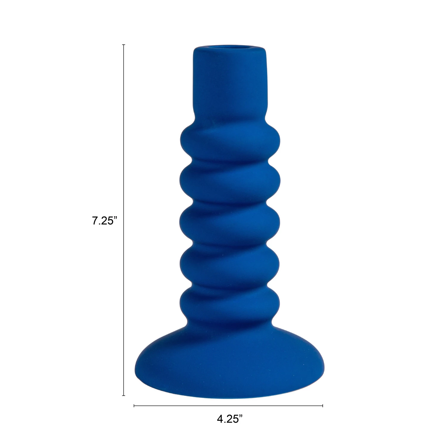Catalog Name: 4-1/4" Round x 7-1/4"H Stoneware Taper Holder, Latex Glaze, Blue
