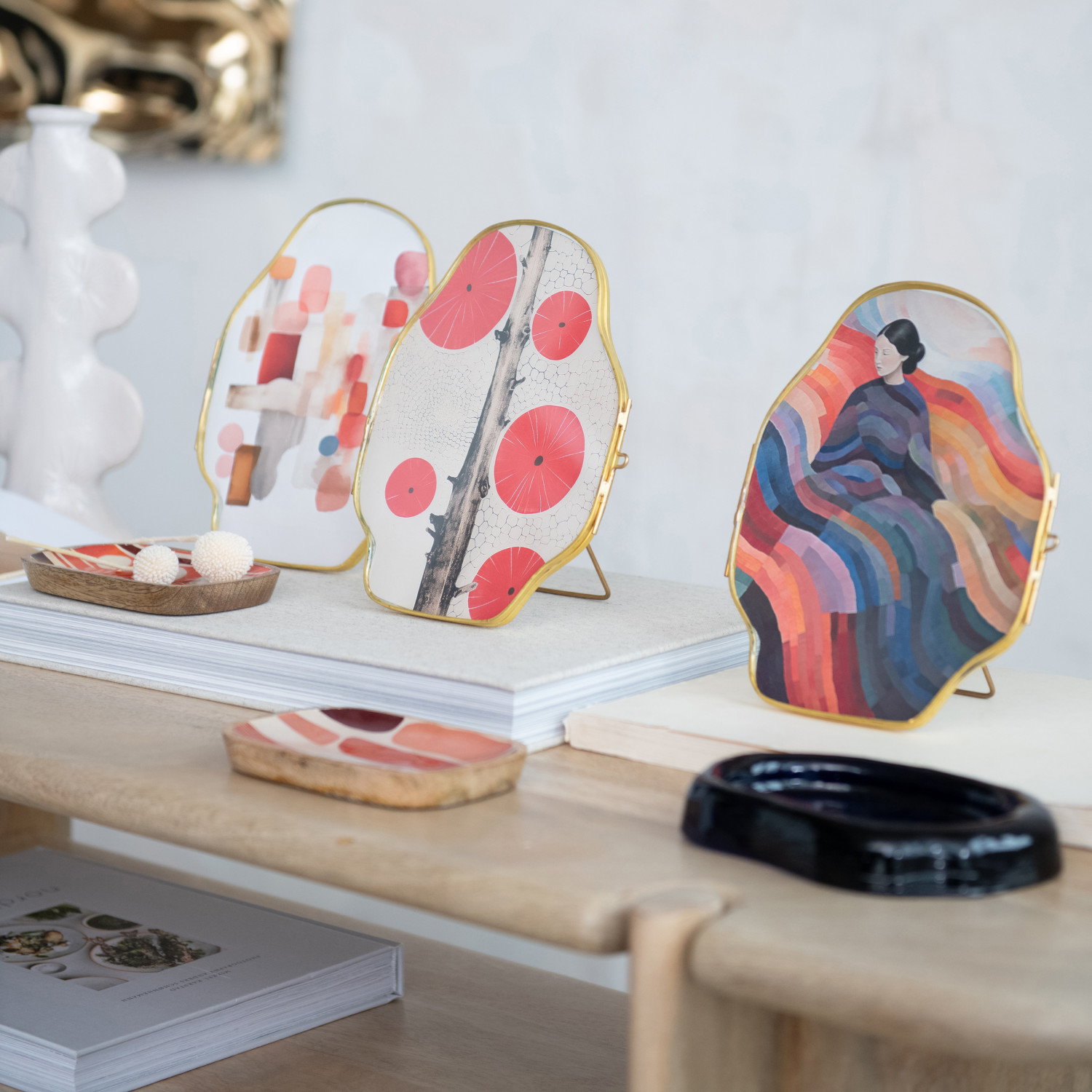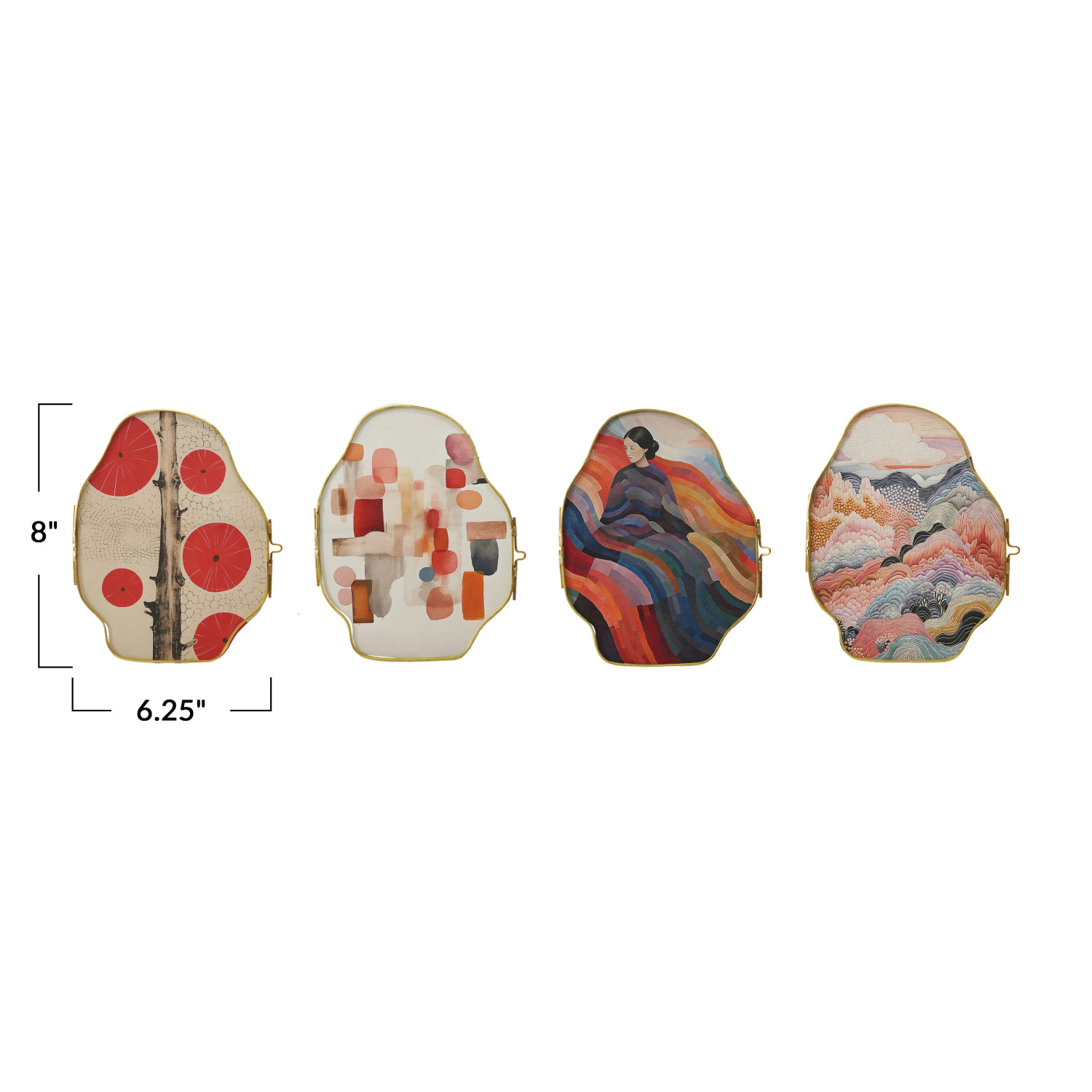 Catalog Name: 6-1/4"W x 8"H Brass & Glass Framed Organic Shaped Standing Art/Photo Frame, Multi Color, 4 Styles (Holds 6" x 7-3/4" Photo)