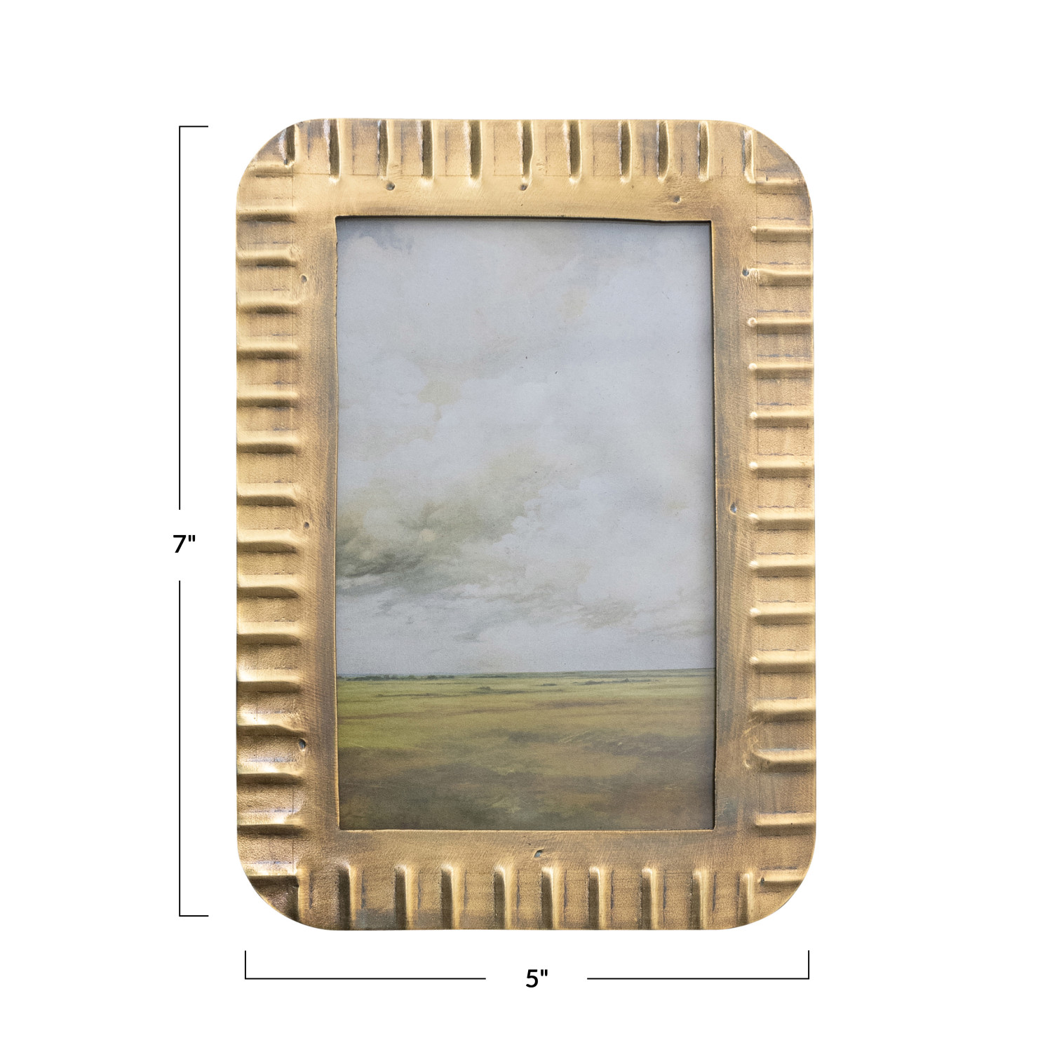Catalog Name: 5"L x 7"H Metal Ribbed Photo Frame, Antique Brass Finish (Holds 4" x 6" Photo)