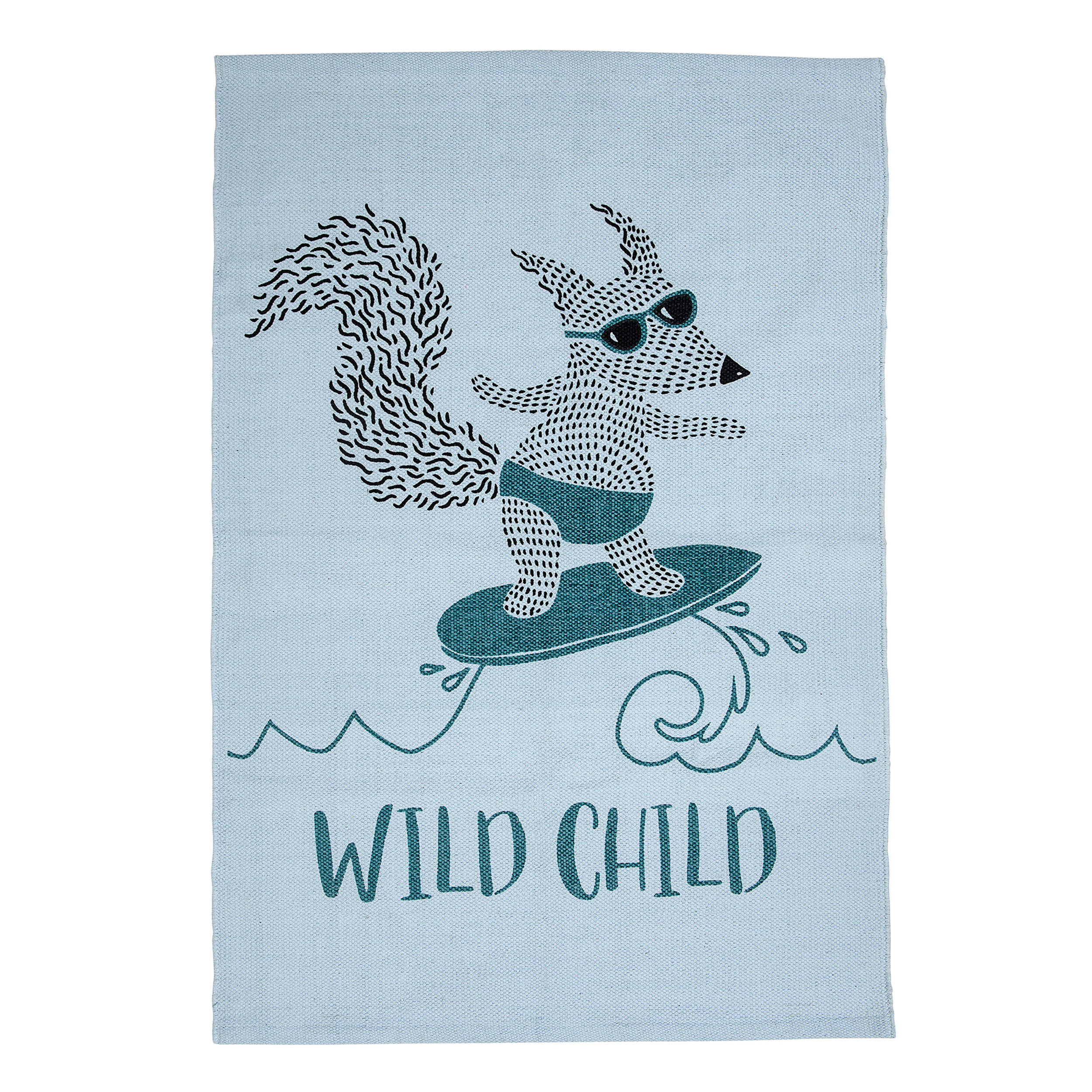 Cotton Rug with Surfing Fox in Blue