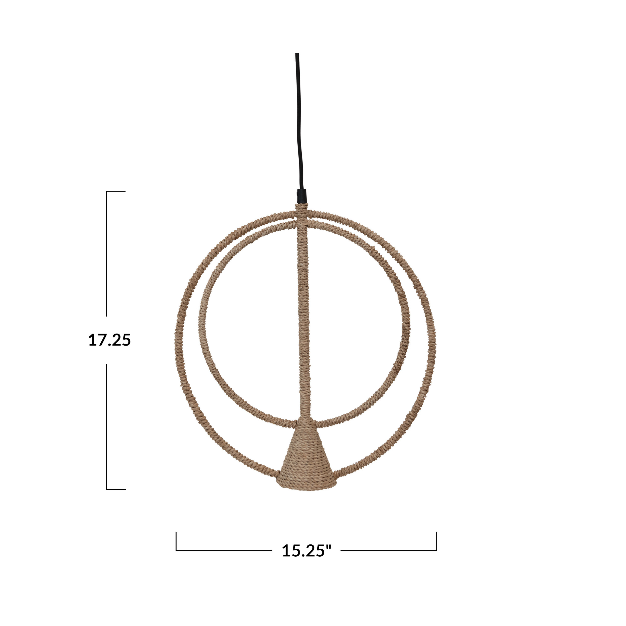 Catalog Name: 15-1/4"W x 17-1/4"H Abaca Rope Pendant Lamp w/ Metal Frame, 4' Cord, Natural (Hardwire Only)