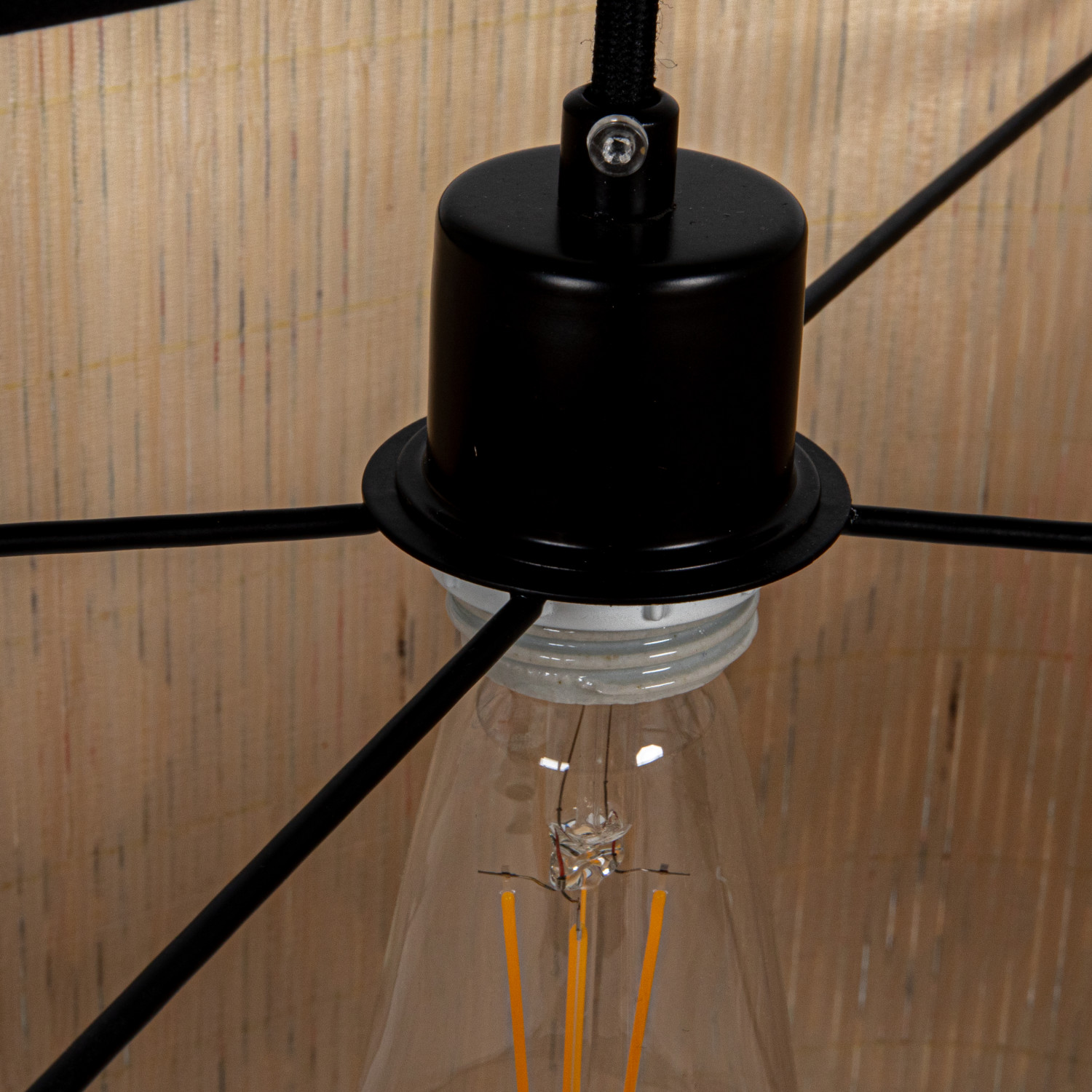 This Ikat Elegance Bamboo Pendant Lamp marries the allure of natural materials with the intricate beauty of Ikat design. The lamp's body, crafted from sustainable bamboo, boasts an organic shape that is both eye-catching and elegant. Adorned with a multi-colored Ikat pattern, it casts a warm, inviting glow through its unique silhouette. The lamp is designed for hardwiring and includes a black canopy and an 8-foot cord, offering versatility in placement. It requires a single E26 bulb, allowing for a maximum of 100 watts to illuminate the space. With its blend of traditional craftsmanship and contemporary style, this pendant lamp is a stunning addition to any room.