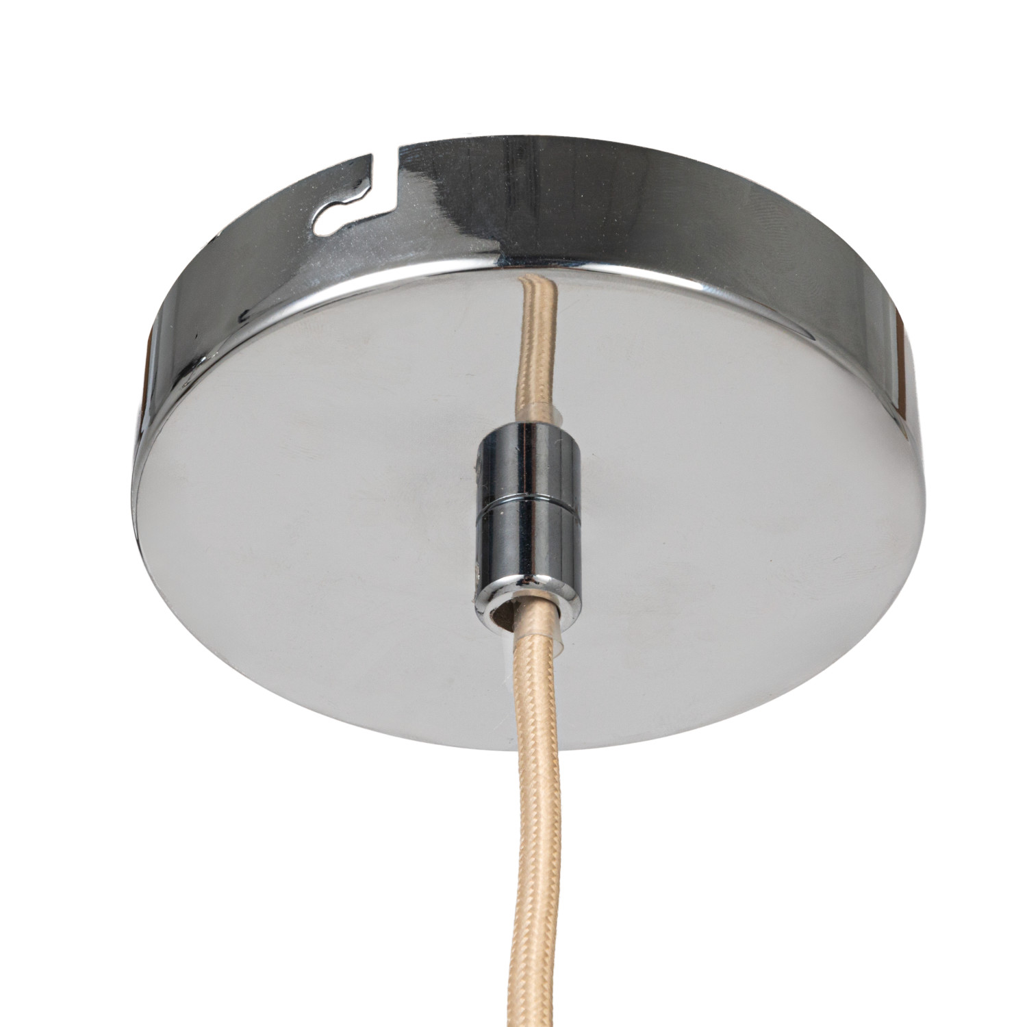 Catalog Name: 9-1/2" Round x 7-3/4"H Glass & Metal Ribbed Pendant Lamp, 6' Fabric Cord, Chrome Finish (Hardwire Only)