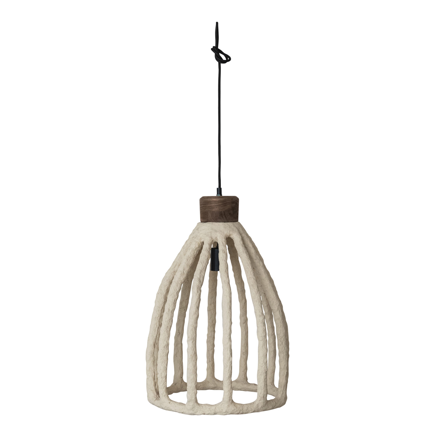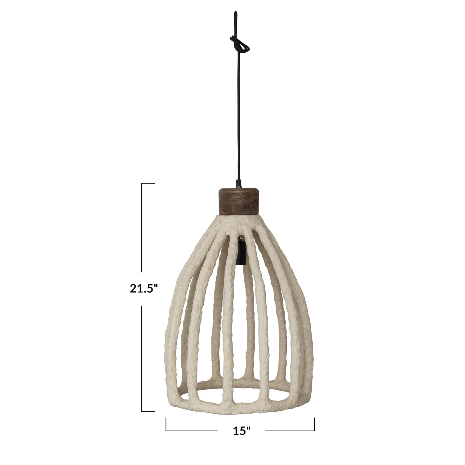 Handmade Paper Mache, Mango Wood & Metal Pendant Lamp, 6' Cord (Hardwire Only)
