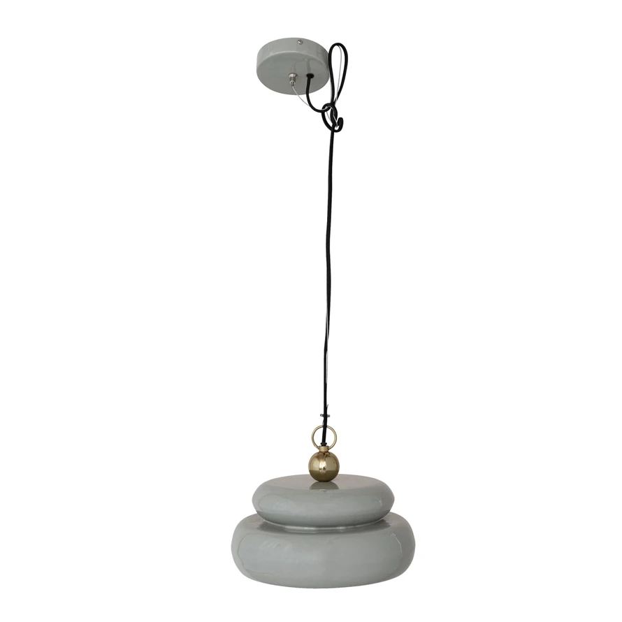 Enameled Metal Pendant Lamp, 6' Fabric Cord, Grey & Gold Finish (Hardwire Only)