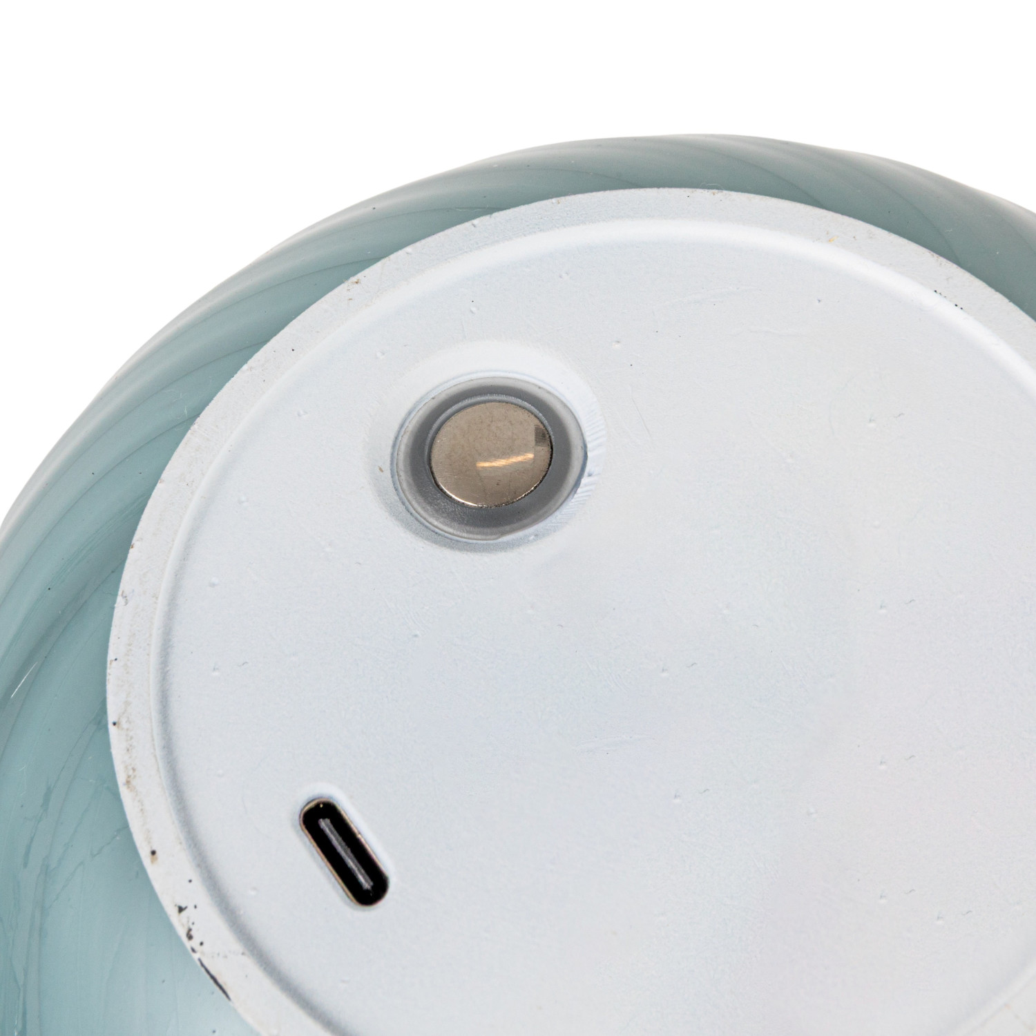 Catalog Name: 5-3/4" Round x 7-1/2"H Hand-Blown Art Glass LED Rechargeable Table Lamp w/ Touch Sensor, Blue (USB-C Cord Included)