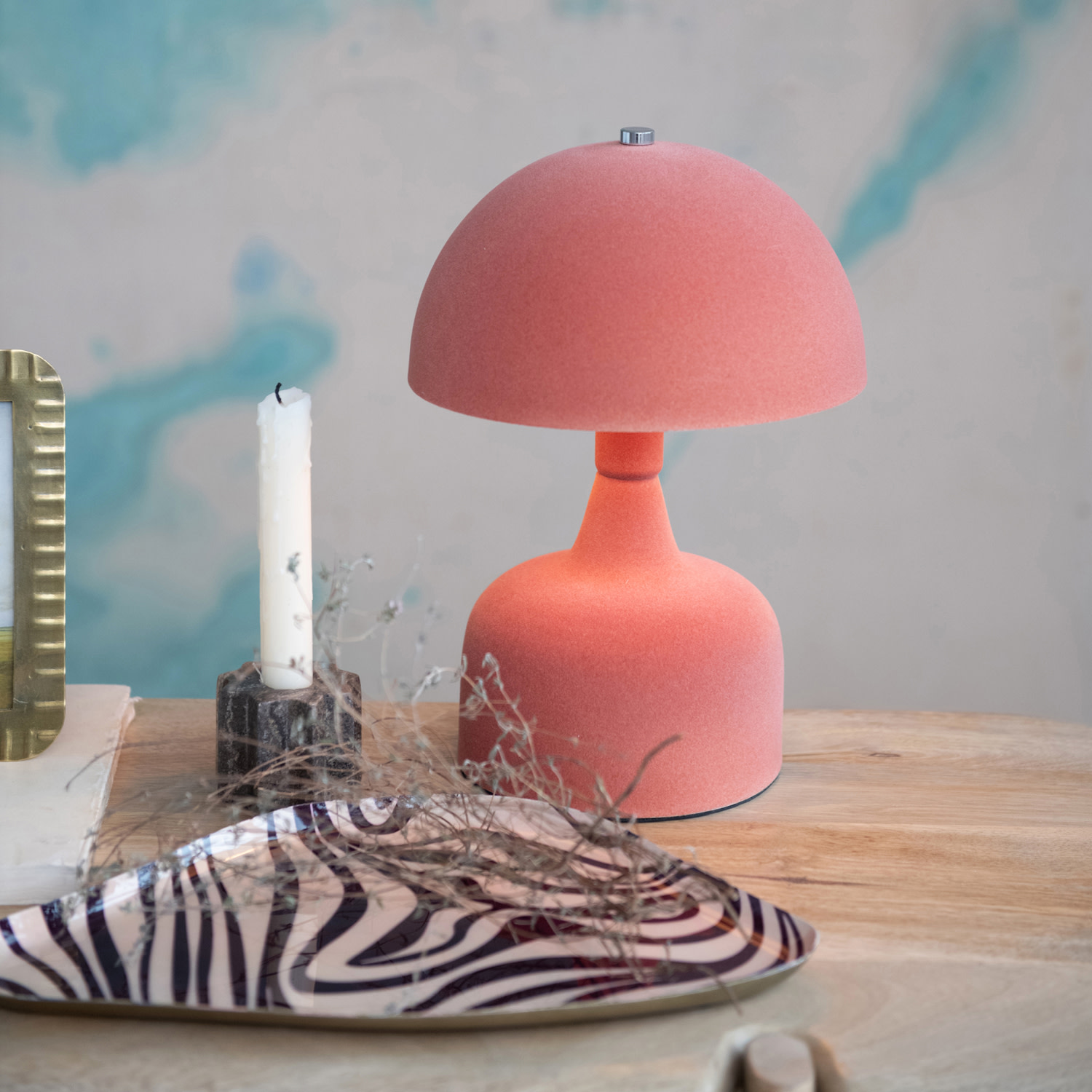 Catalog Name: 8" Round x 11-1/2"H Flocked Metal Table Lamp w/ Inline Switch, Terra-cotta Color
