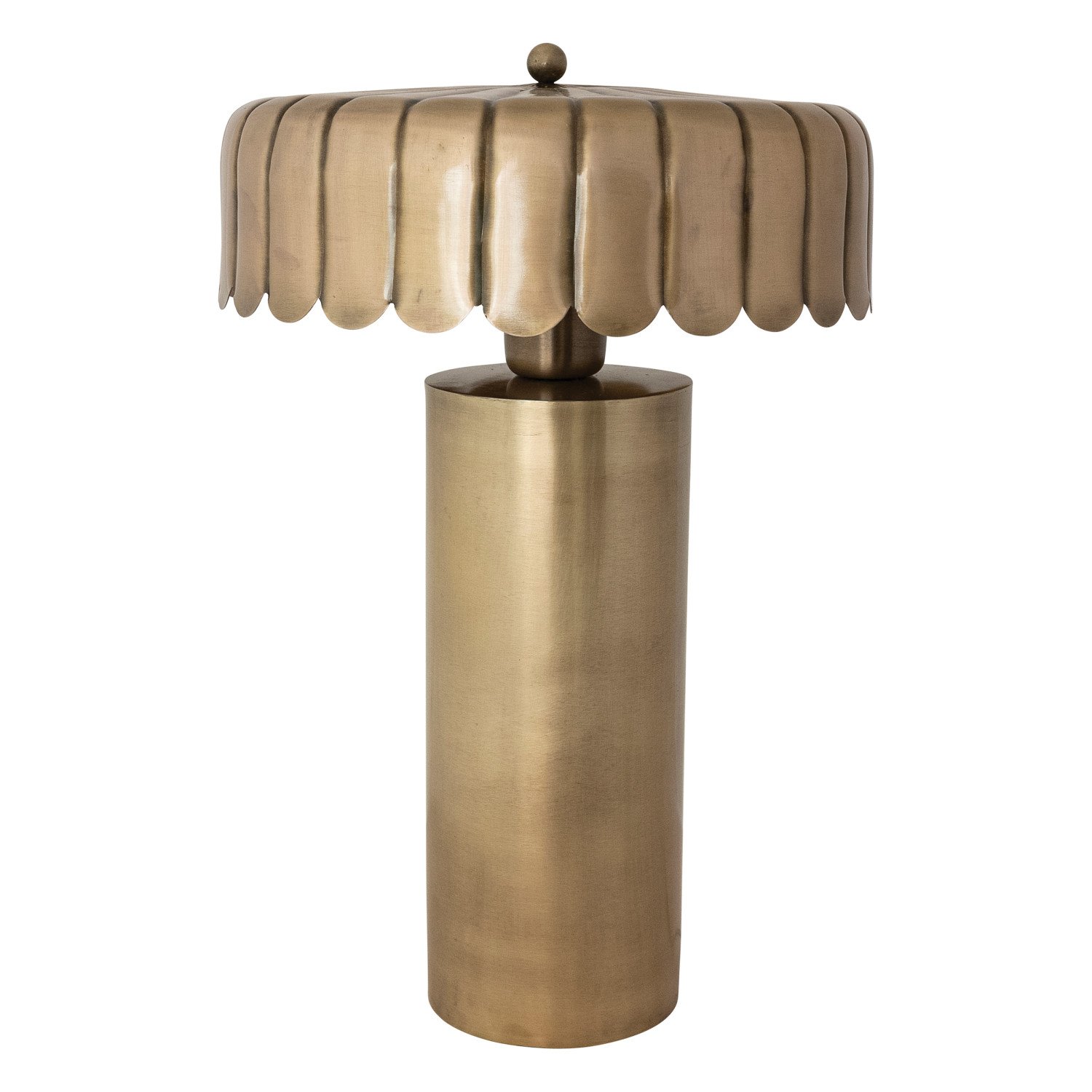 Metal Table Lamp with Scalloped Shade & Inline Switch, Antique Brass Finish