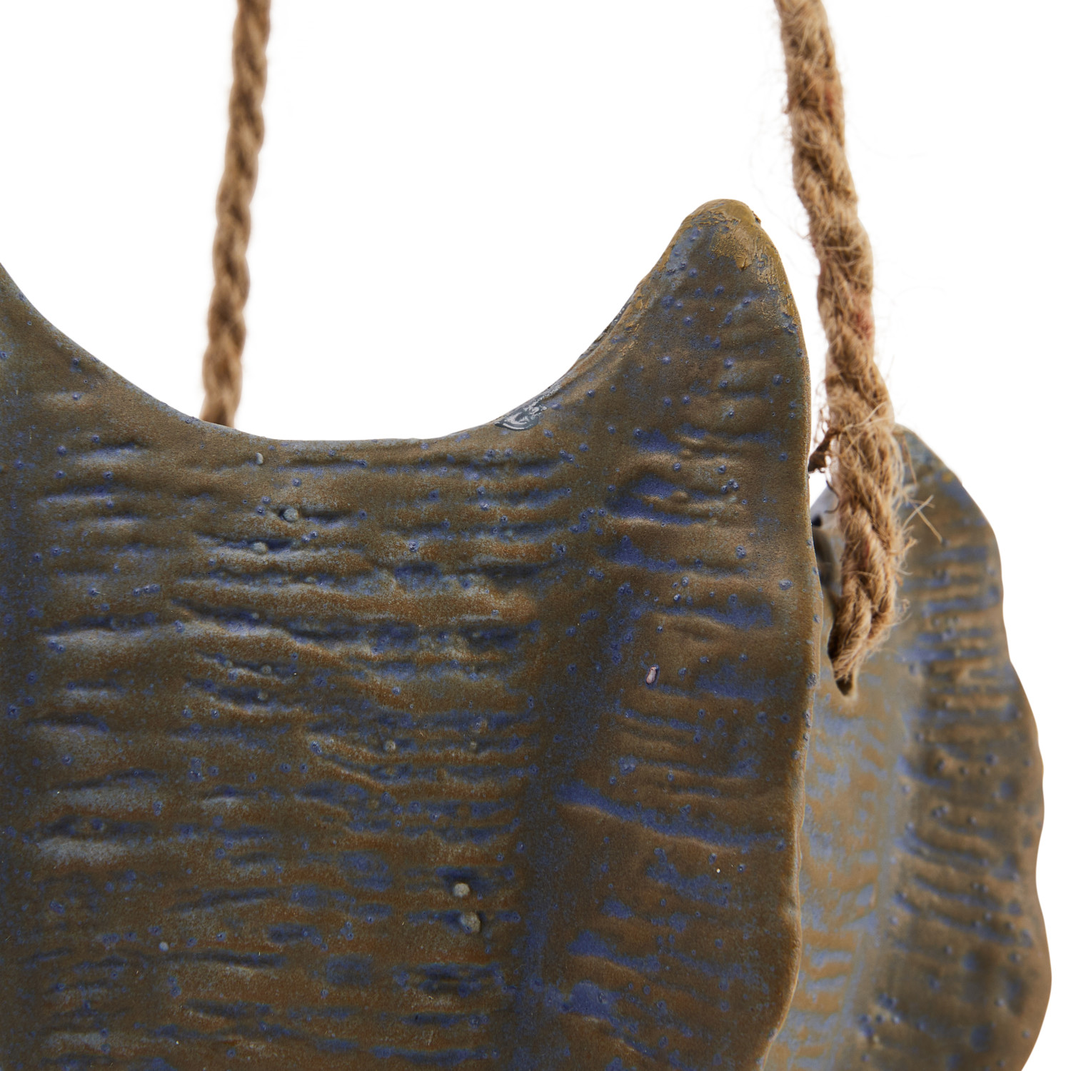 Catalog Name: 6-1/4" Round x 5-1/4"H Hanging Debossed Stoneware Planter w/ Jute Rope Hanger, Reactive Glaze, Matte Blue (Each One Will Vary)