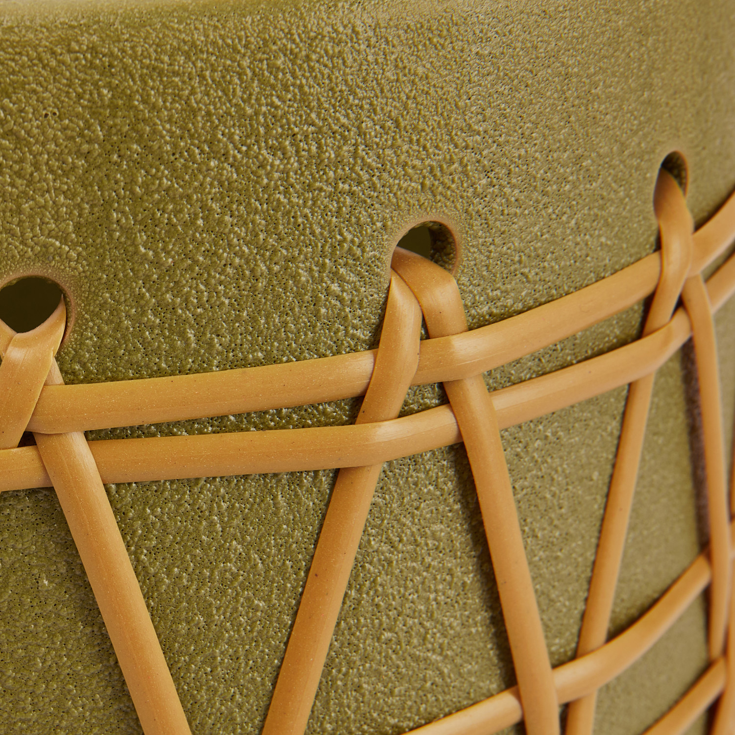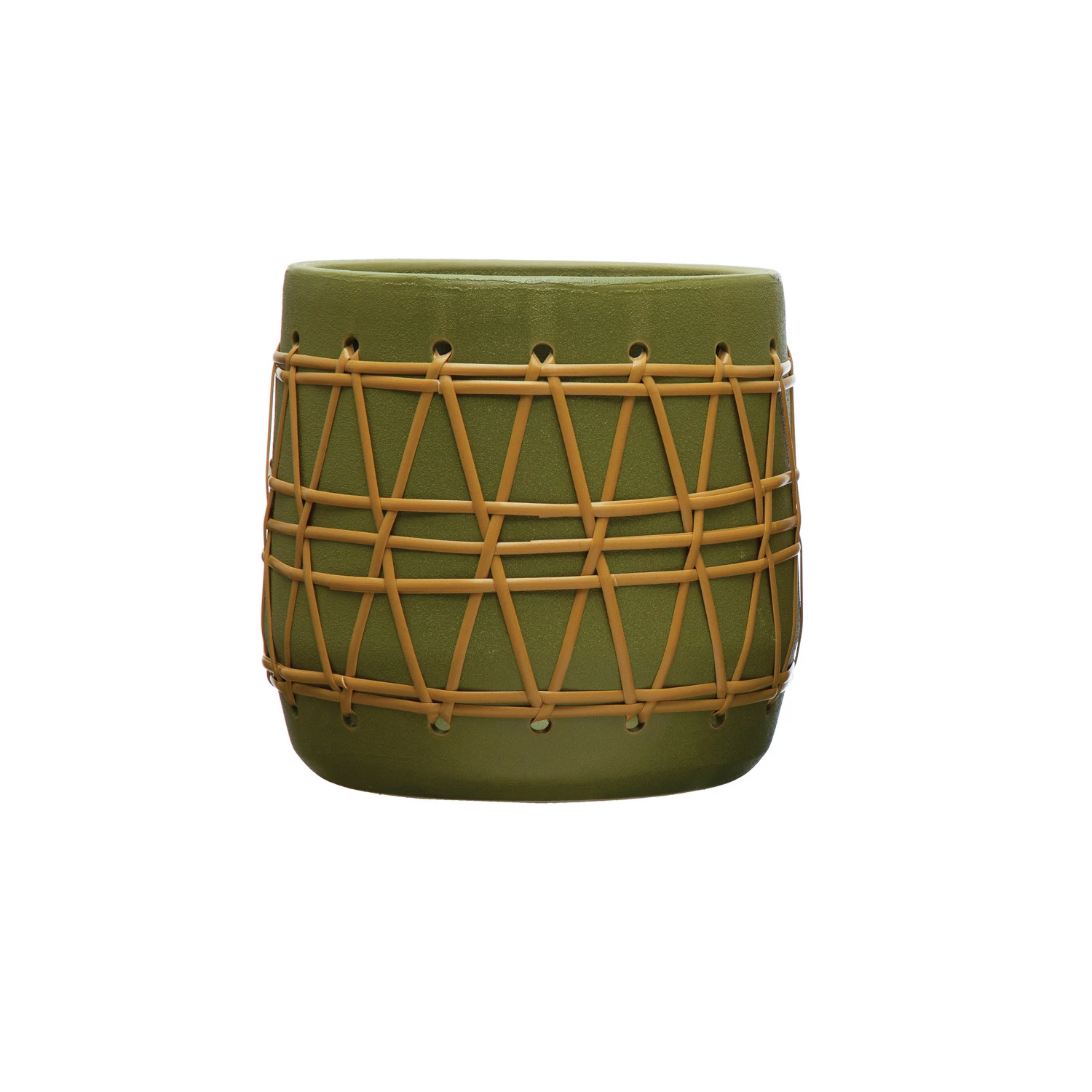 Catalog Name: 10-1/4" Round x 9-3/4"H Stoneware Planter w/ Weaving, Matte Green (Holds 10" Pot)