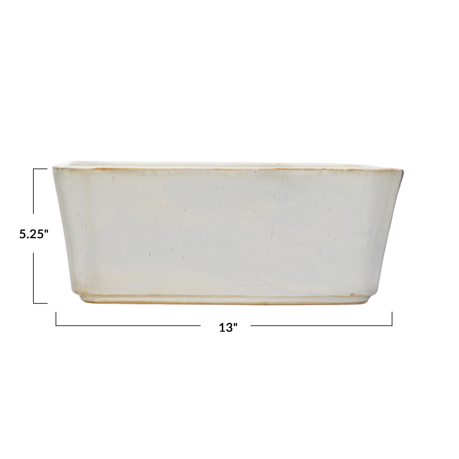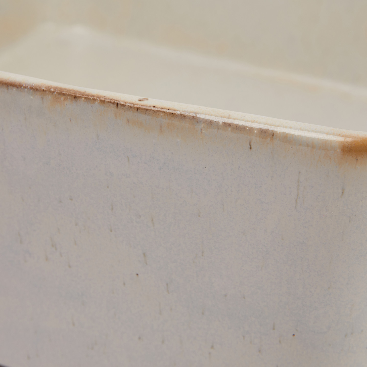 Mix and match our carefully curated collection of standing, wall mount, and decorative pots and planters. Explore a vast array of textures, hues, and silhouettes to create a personalized indoor jungle, including planters on stands, wall buckets, oversized pots, hanging planters, figurine planters, window boxes, footed pots, and so much more. Choose from a wide array of materials from stoneware and ceramic to metal and glass, and styles from contemporary boho and classic farmhouse to mid-century modern and vintage glam. Showcase lovingly grown herbs and greenery inside pieces from this artfully crafted collection, or simply use as a stylish cover for low-maintenance faux flora. This farmhouse-inspired planter features rectangular stoneware construction in a naturally variating reactive glaze. Display in a living space of any style from farmhouse to Scandinavian. Showcase seasonal flora or as a statement-making standalone accent. Made from stoneware.