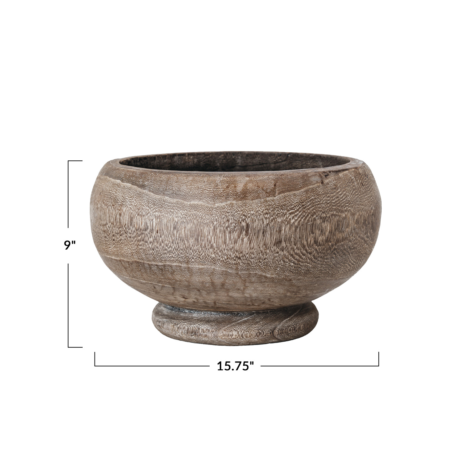 Catalog Name: 15-3/4" Round x 9"H Paulownia Wood Footed Planter, Stained Finish (Holds 14" Pot)