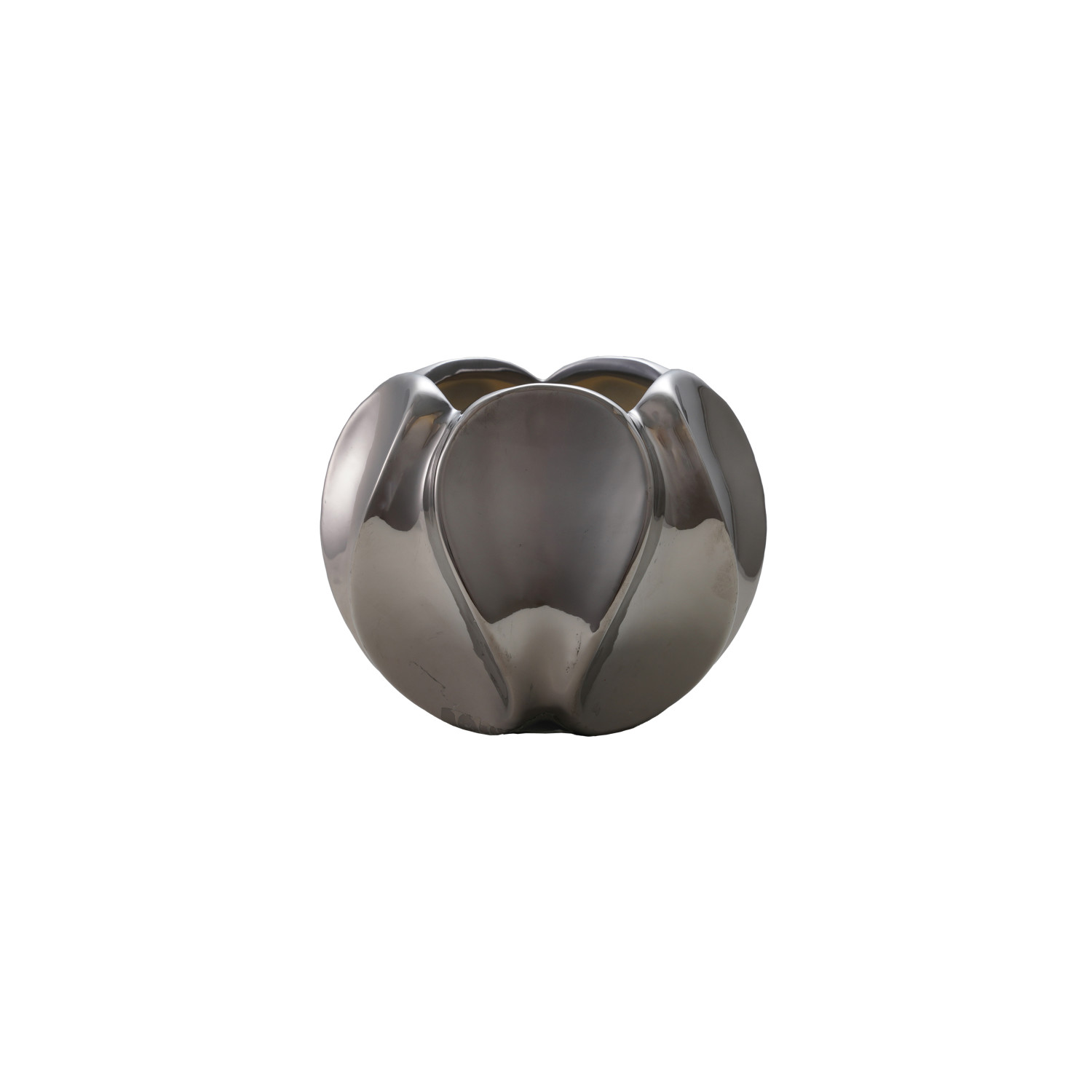 Catalog Name: 5-3/4" Round x 4-1/2"H Stoneware Sculpted Planter, Chrome Finish (Holds 3" Pot)