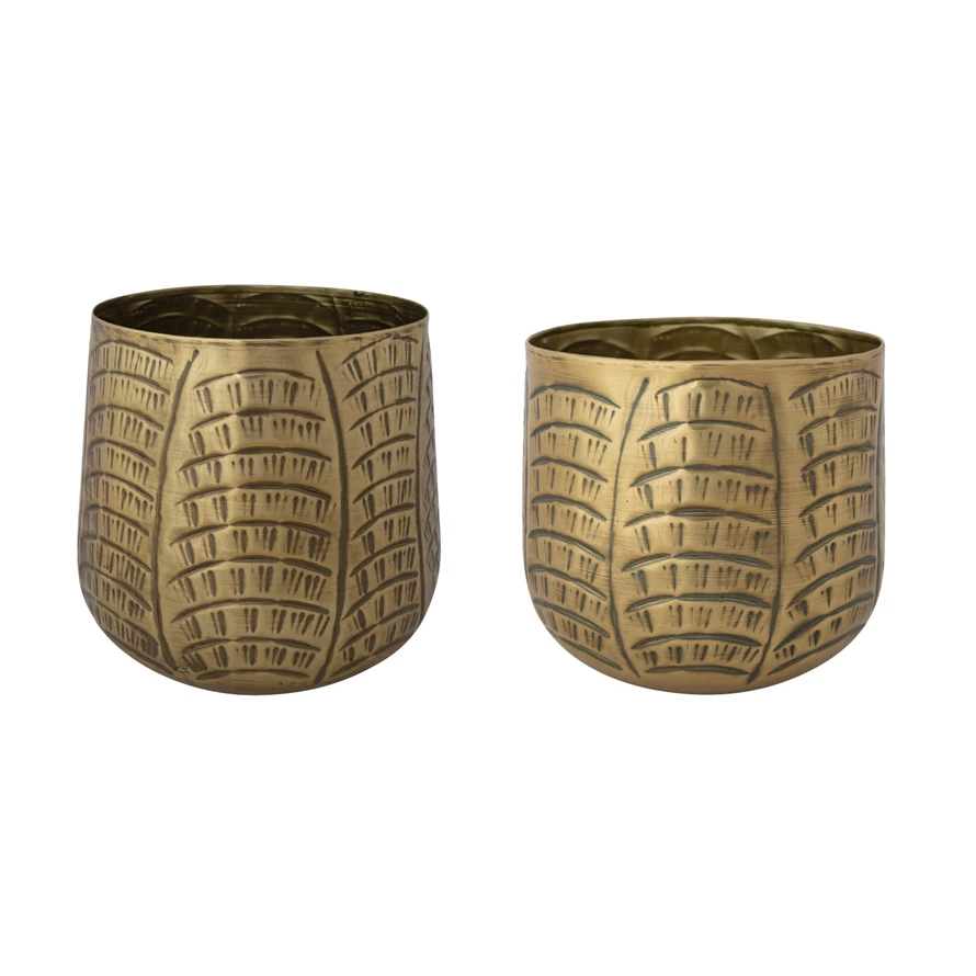 Debossed Metal Planters, Antique Brass Finish, Set of 2 (Holds 6" & 4" Pots)