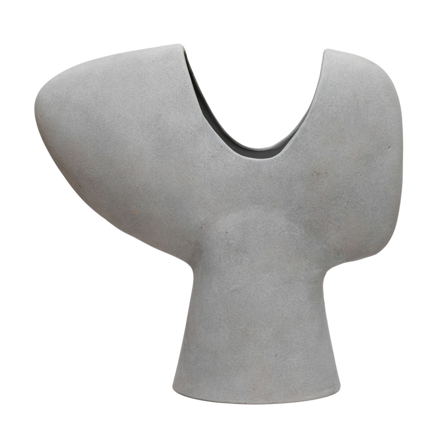 Add some dimension and style to the space with this Y Shaped Terra-cotta Abstract Vase, Grey. This vase is a unique and eye-catching piece that features a Y shaped design with a smooth and glossy grey finish. The vase is coated with waterproof glue on the interior for added durability and protection. However, it is not guaranteed to be 100% waterproof due to the nature of terra-cotta. The vase is made of high-quality terra-cotta clay that is fired at high temperatures to create a sturdy and stable vase. The vase has a contemporary, industrial, or minimalist appeal that can suit any modern home decor style. This decorative vase is a simple yet elegant addition to any home decor. Fill with dried florals, faux botanicals, or showcase as a standalone accent.