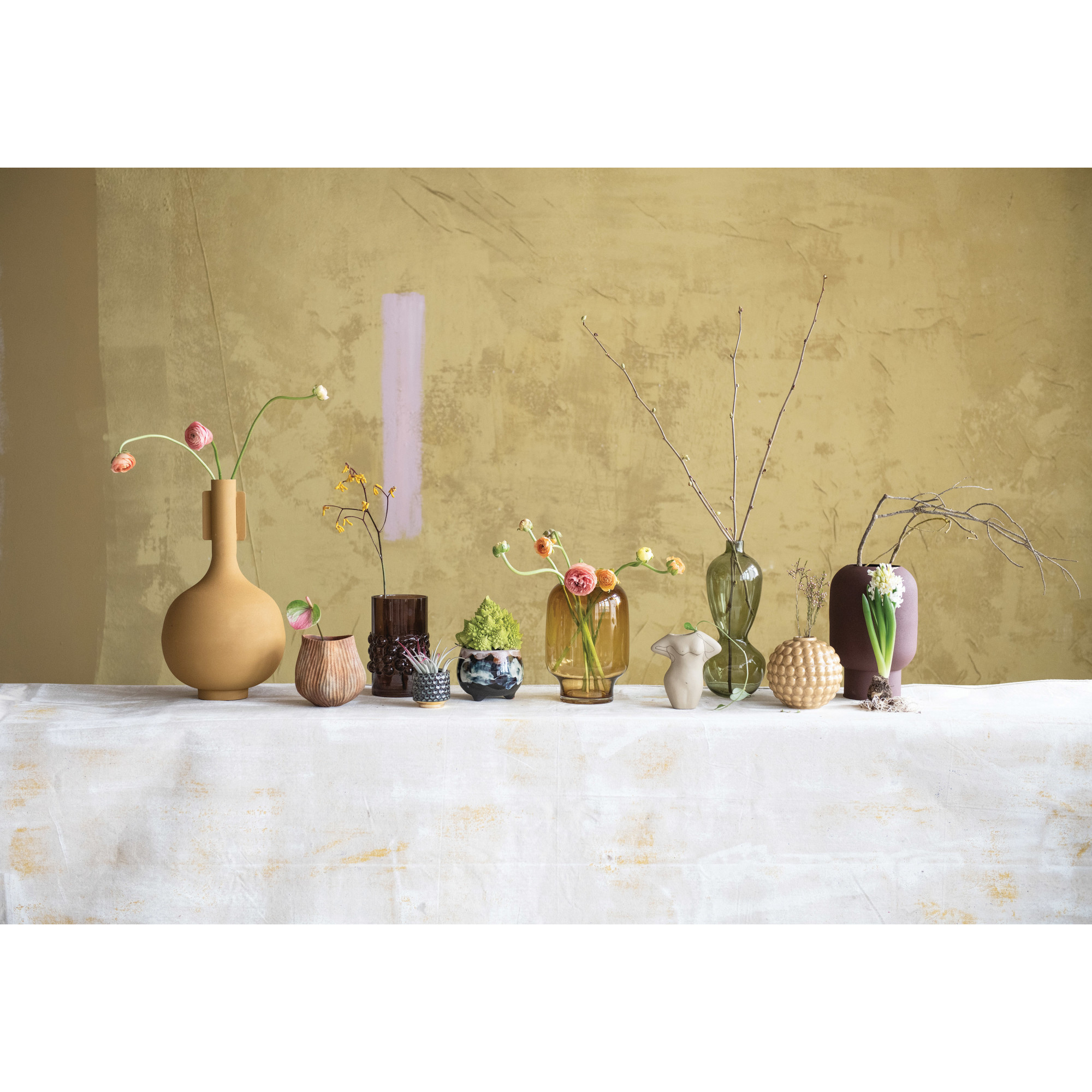 Catalog Name: 9-3/4" Round x 18-1/4"H Textured Metal Vase, Matte Mustard Color