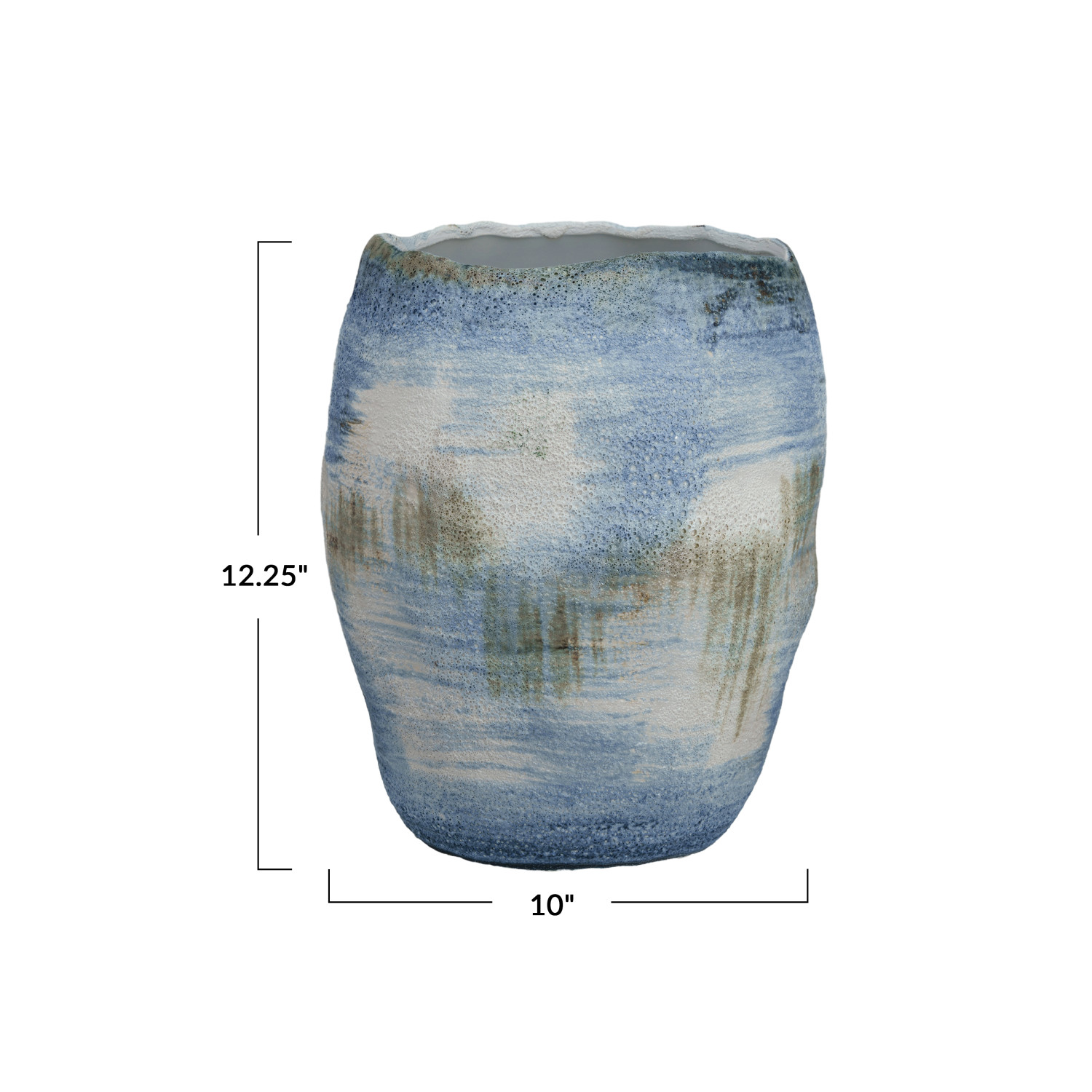 Catalog Name: 10" Round x 12-1/4"H Stoneware Organic Shaped Vase, Reactive Glaze, Blue (Each One Will Vary)