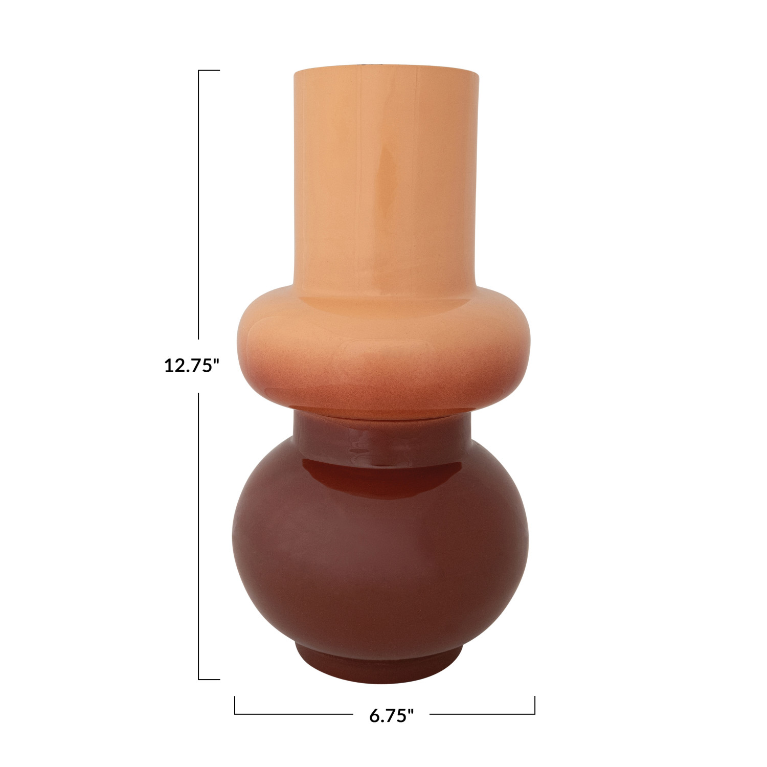 Enameled Metal Indoor/Outdoor Vase, Rust & Nude Color Ombre