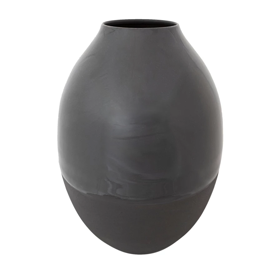 Two-Textured Enameled Metal Vase, Smooth & Sand Finish, Charcoal Color