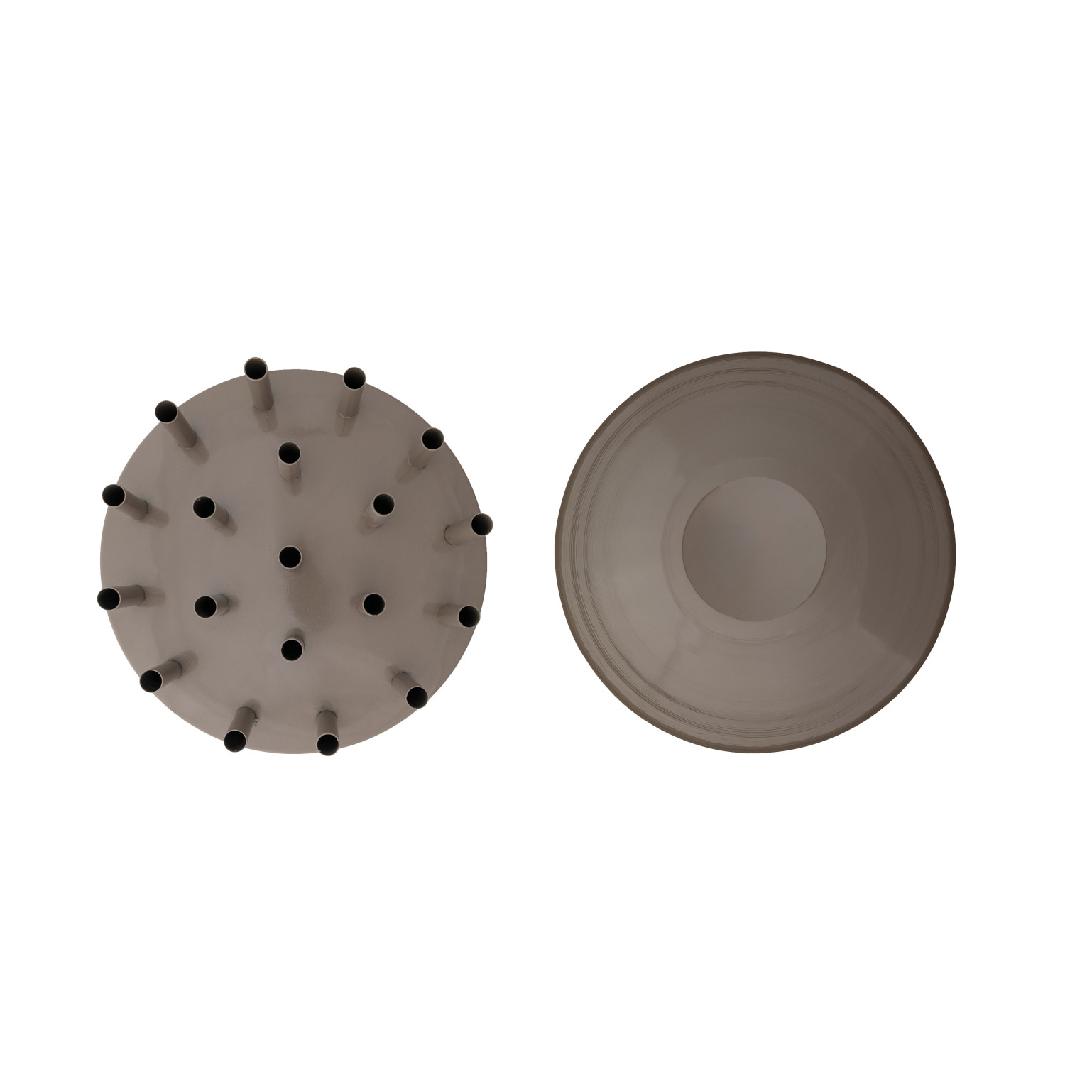 Catalog Name: 19-1/4" Round x 16"H Enameled Metal Footed Multi-Stem Flower Vase w/ Removable Frog Lid & 19 Openings, Brown, Truck Ship
