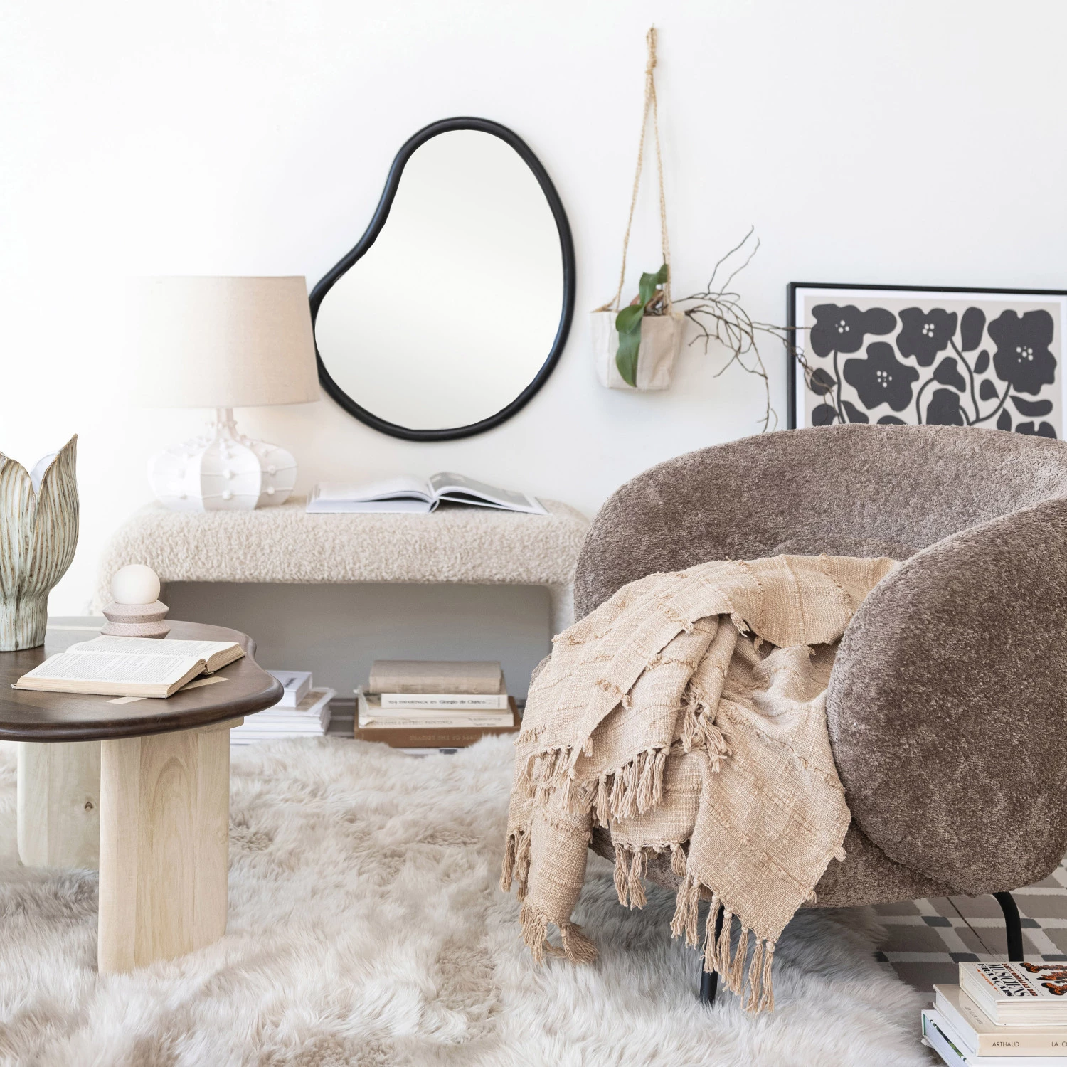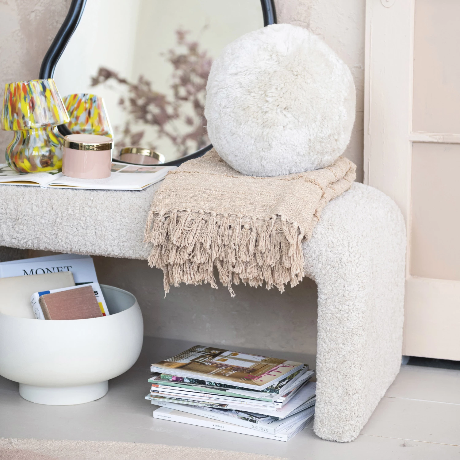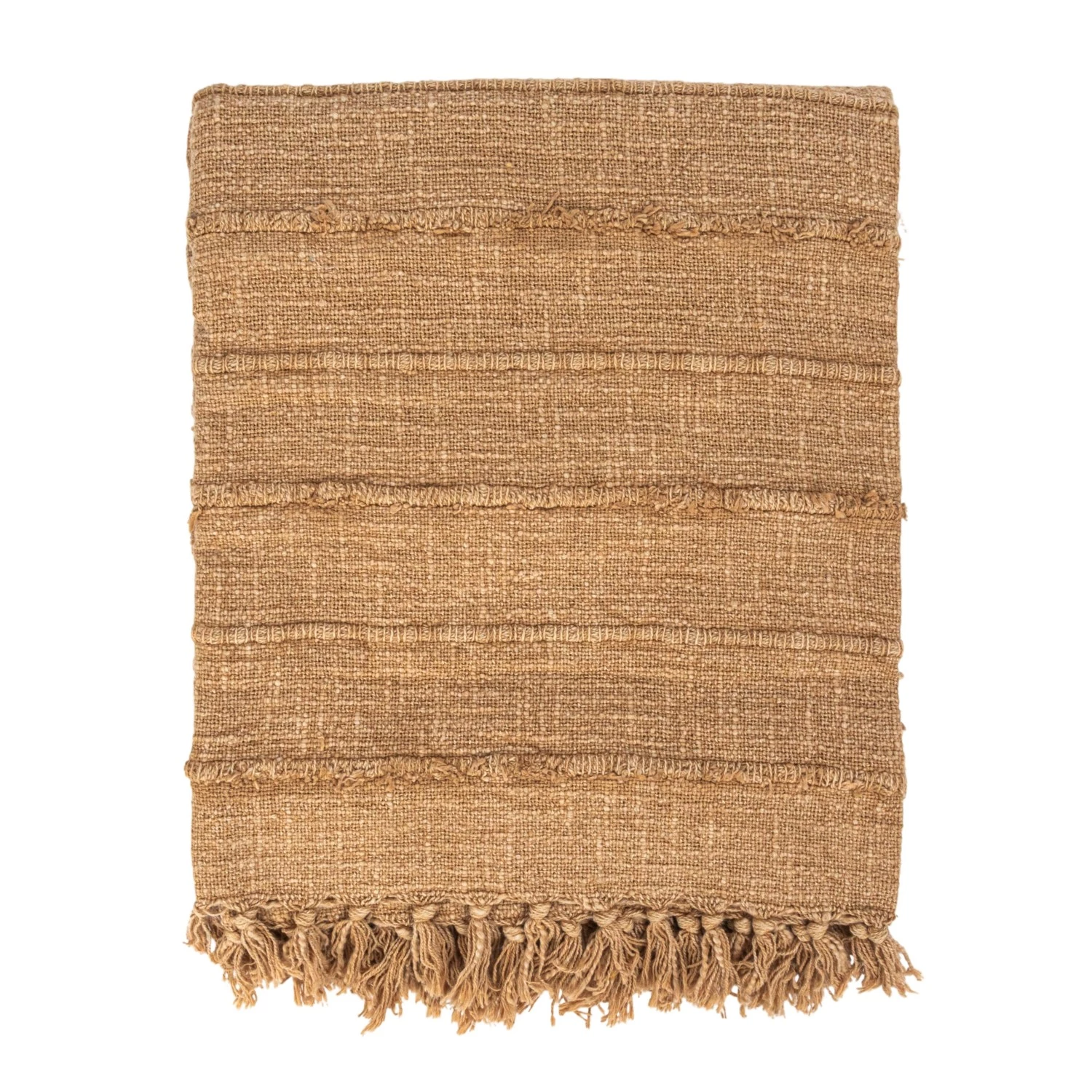 Add some comfort and style to the home with this stonewashed woven cotton slub throw in beige. This throw has a stonewashed texture and a pom pom trim that gives it a plush and playful look. The throw also has a beige color that creates a neutral and soothing look. The throw can be used in different ways, either as a blanket or a decorative item. Wrap it to keep anyone warm and cozy, or drape it over the sofa, bed, chair, or bench to add some flair and interest. The throw can also blend with any decor style, from Scandinavian to boho, global to modern, or French country. It can create a cozy and inviting atmosphere in the living room, bedroom, or any other space. The throw is made of woven cotton slub that is eco-friendly and breathable. It is also easy to care for and durable. It also has a fringe detail on both ends that adds some texture and charm. This stonewashed woven cotton slub throw is a wonderful gift idea for anyone who loves cozy and stylish home accessories.