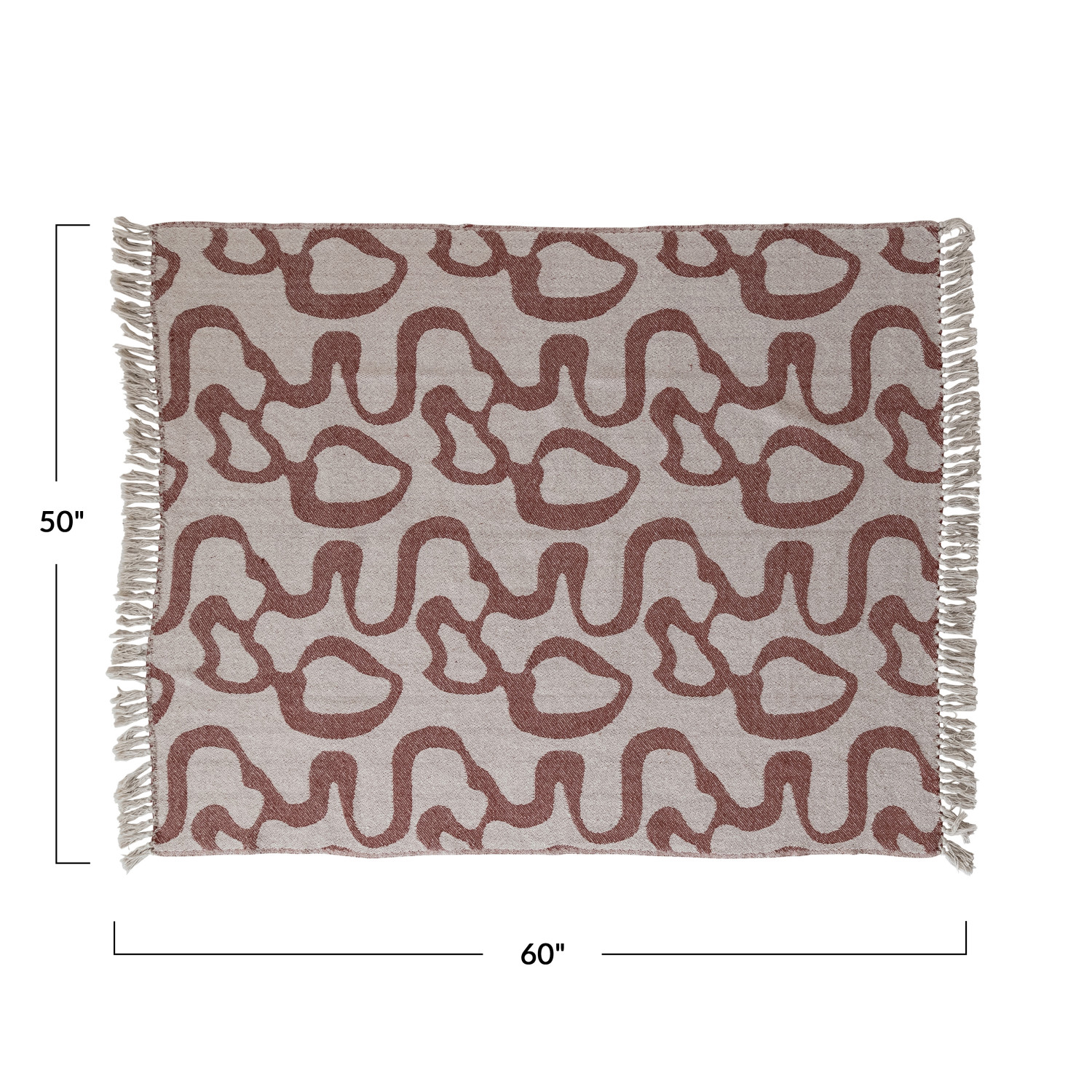 Catalog Name: 60"L x 50"W Woven Recycled Cotton Blend Jacquard Throw w/ Abstract Pattern & Fringe, Natural & Brown
