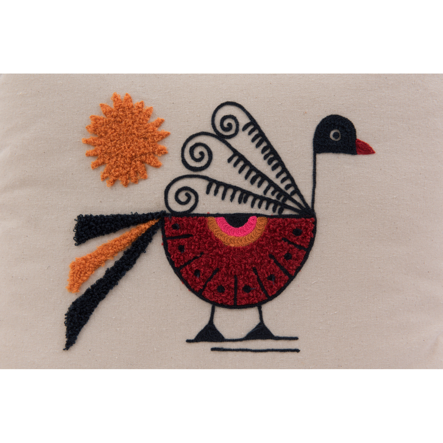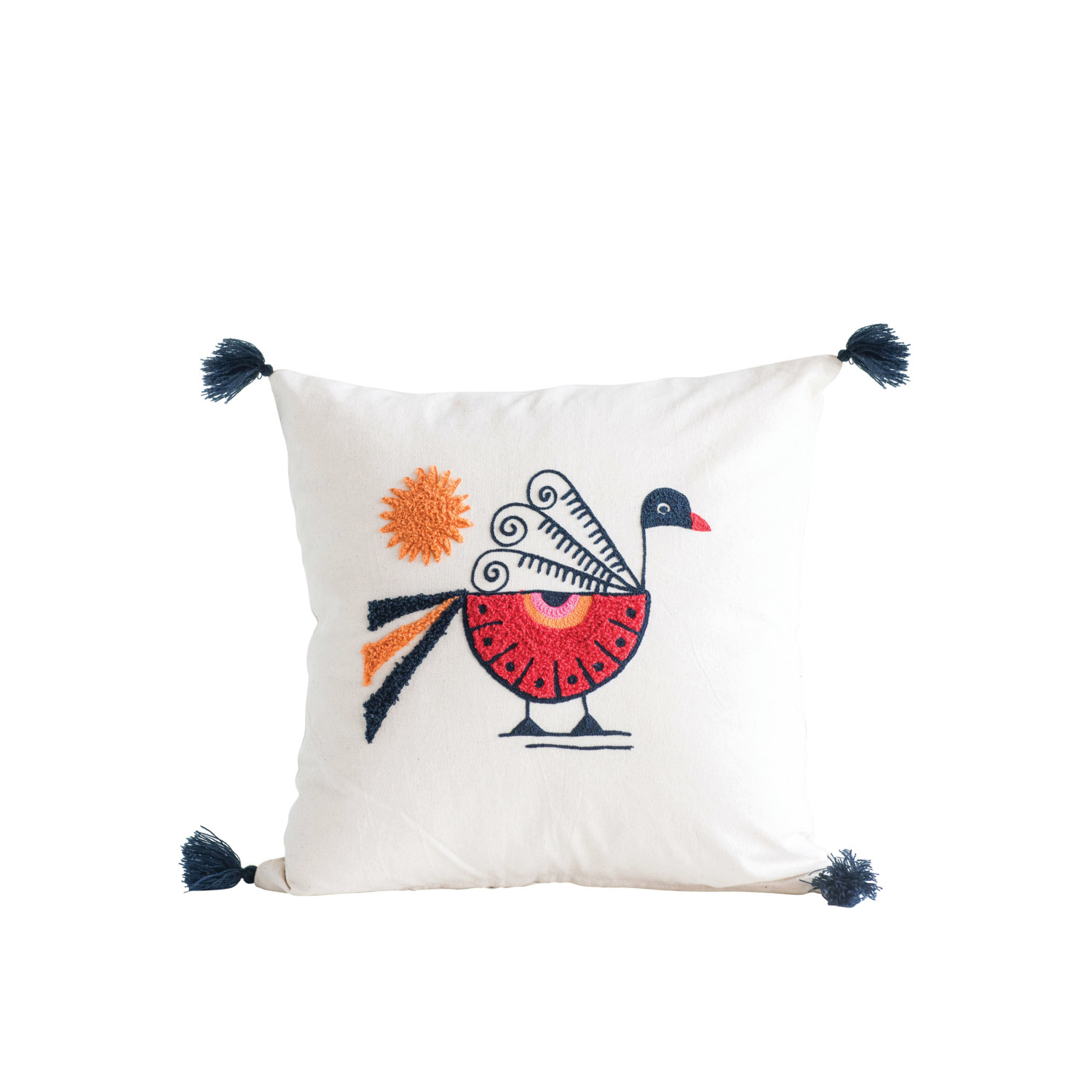 Catalog Name: 18" Square Cotton Pillow w/ Embroidered Peacock & Tassels, Multi Color