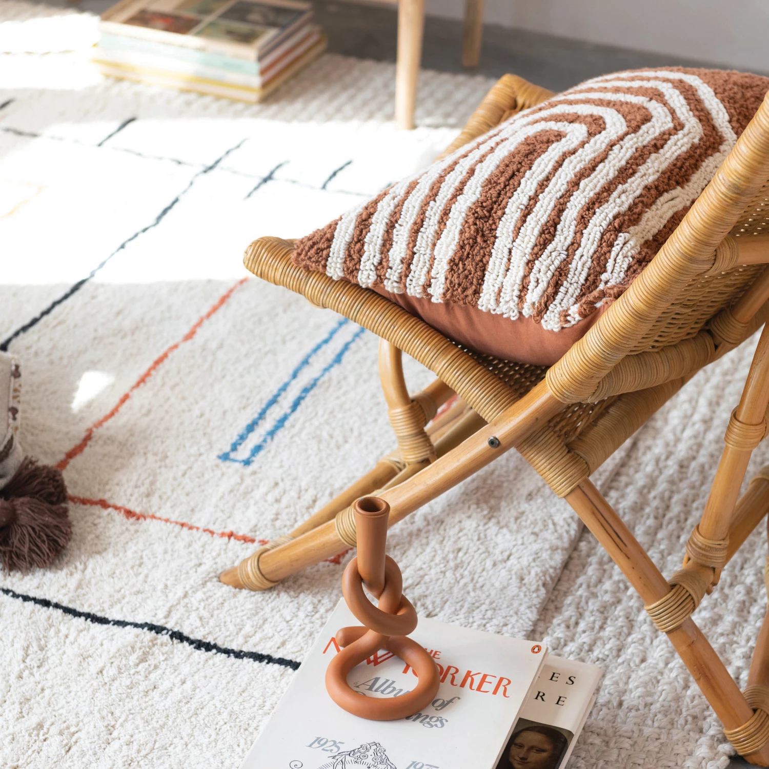 This strikingly modern lumbar pillow cover showcases luxurious tufted cotton construction with a woven geometric design. Sienna and white tufted cotton lumbar pillow with geometric design; Tonal duck cotton encasement on back. Express your constantly evolving style with the simple addition of this eye-catching pillow. Removable lumbar pillow cover with polyester insert; Back zipper with hidden flap; Machine wash cold, gentle cycle, do not bleach, warm iron if needed.