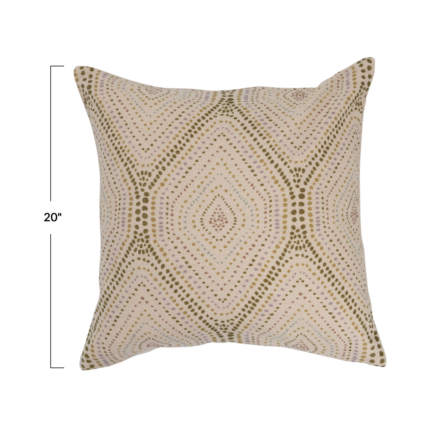 Catalog Name: 20" Square Cotton Slub Pillow w/ Dot Print, Multi Color