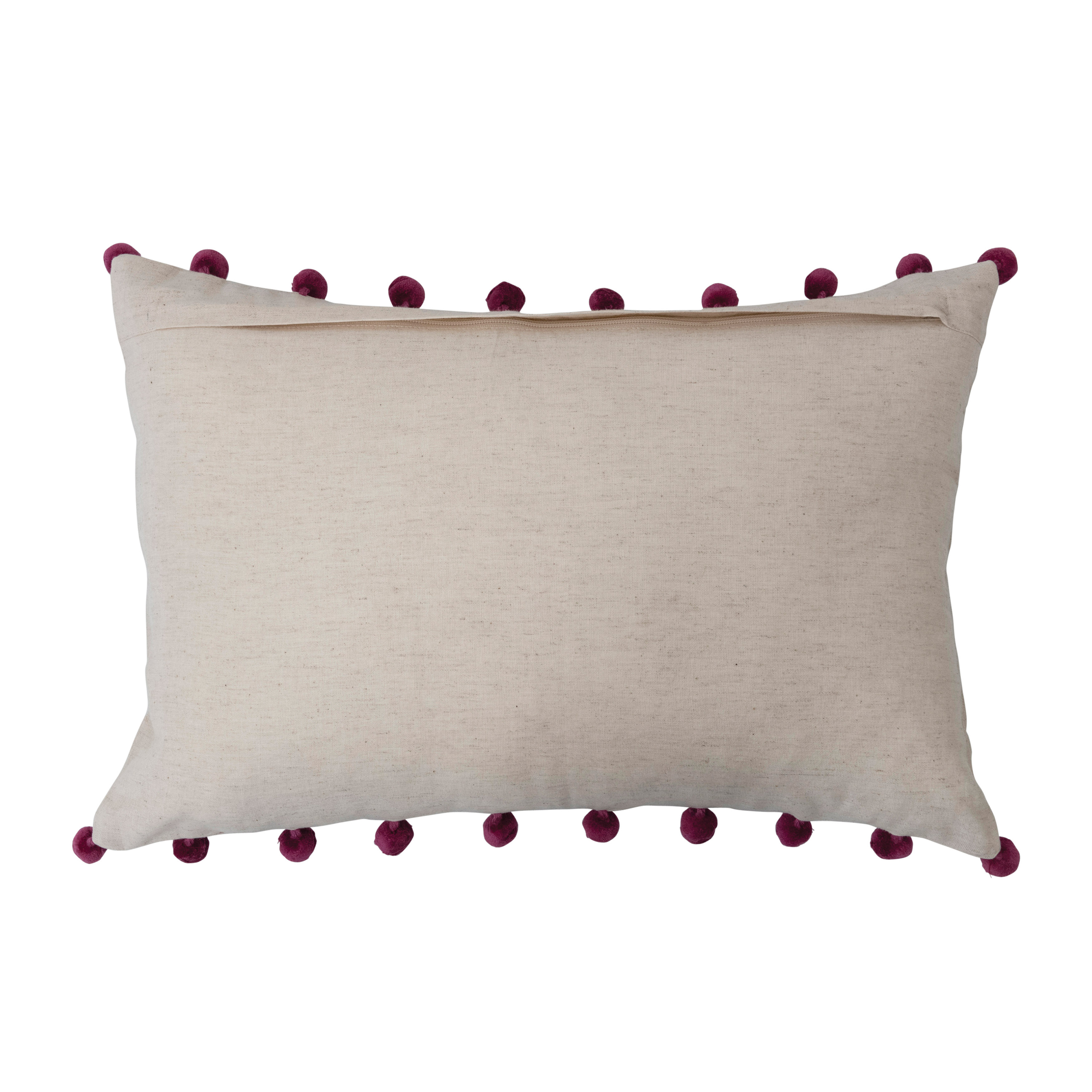 Catalog Name: 20"L x 14"H Cotton & Linen Lumbar Pillow w/ Embroidery & Pom Poms, Multi Color