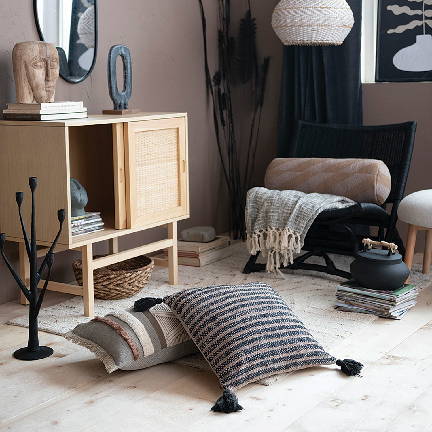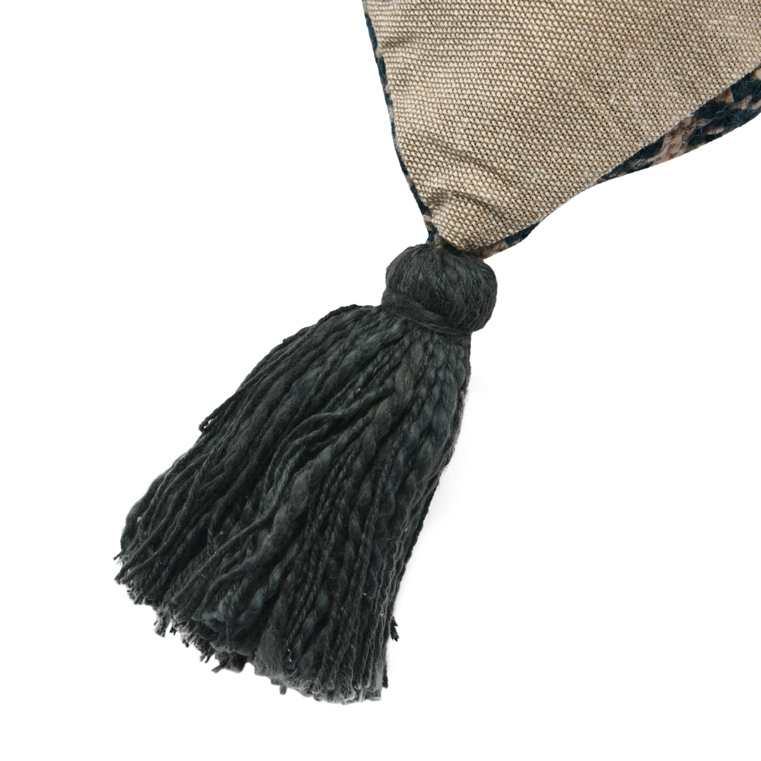 This rustic throw pillow cover features textural woven cotton construction with stripes and decorative tassels. Black and tan woven cotton throw pillow with stripes and tassels; Natural cotton encasement on back. Express your constantly evolving style with the simple addition of this eye-catching pillow. Removable cotton throw pillow cover with polyester insert; Back zipper with hidden flap; Spot clean only.