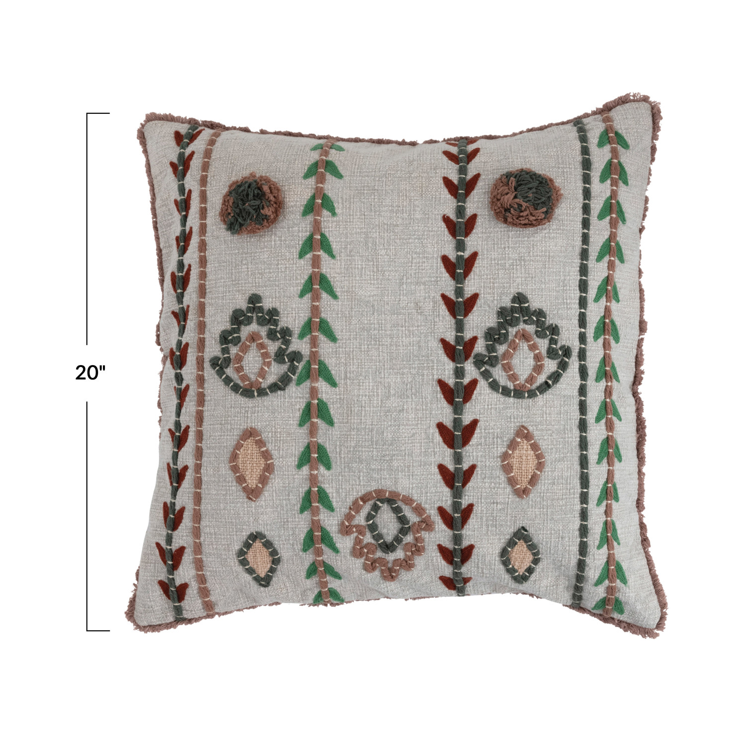 Catalog Name: 20" Square Cotton Pillow w/ Embroidery, Chambray Back & Fringe, Multi Color