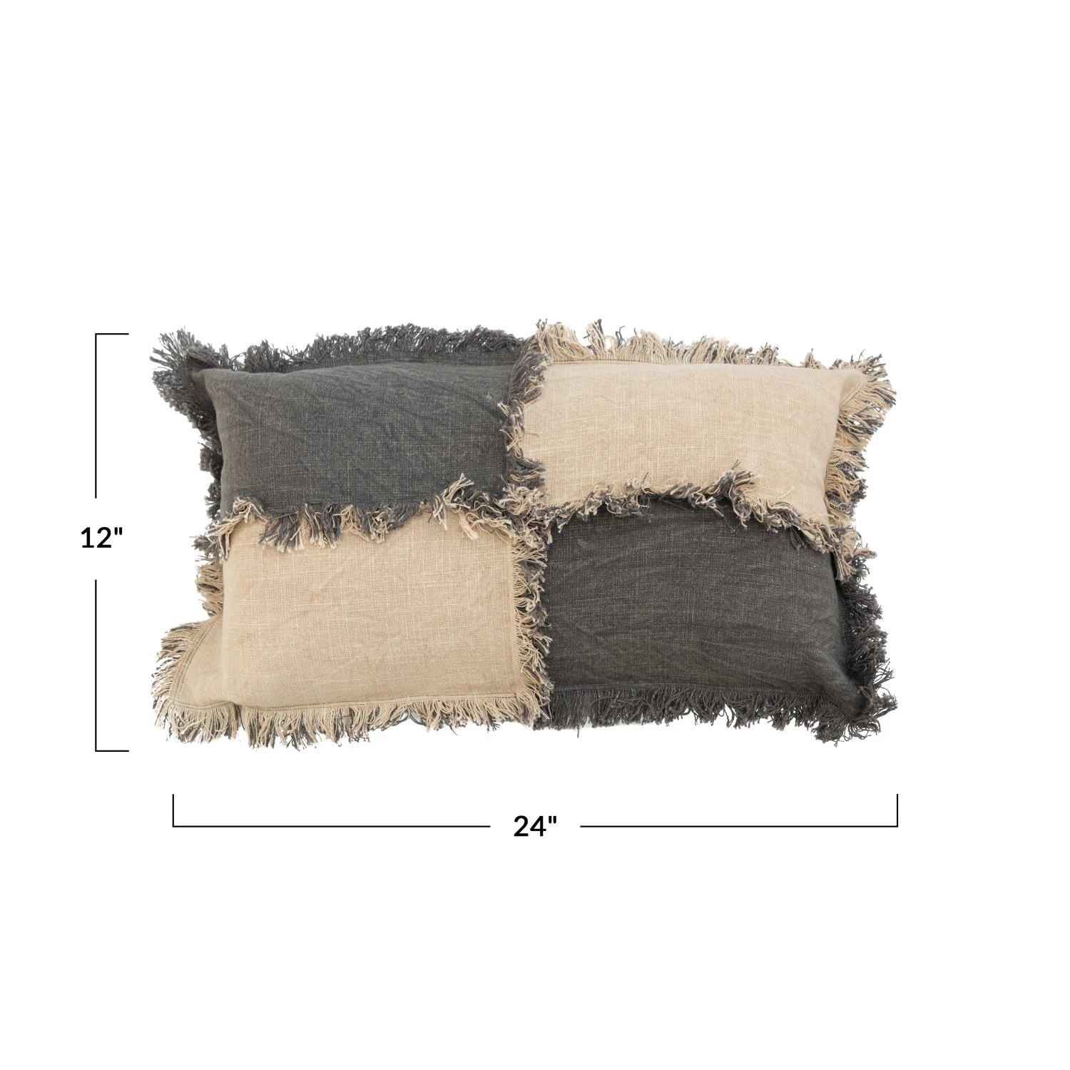 Catalog Name: 24"L x 12"W Woven Cotton Slub Color Block Lumbar Pillow w/ Fringe, Beige & Charcoal Color