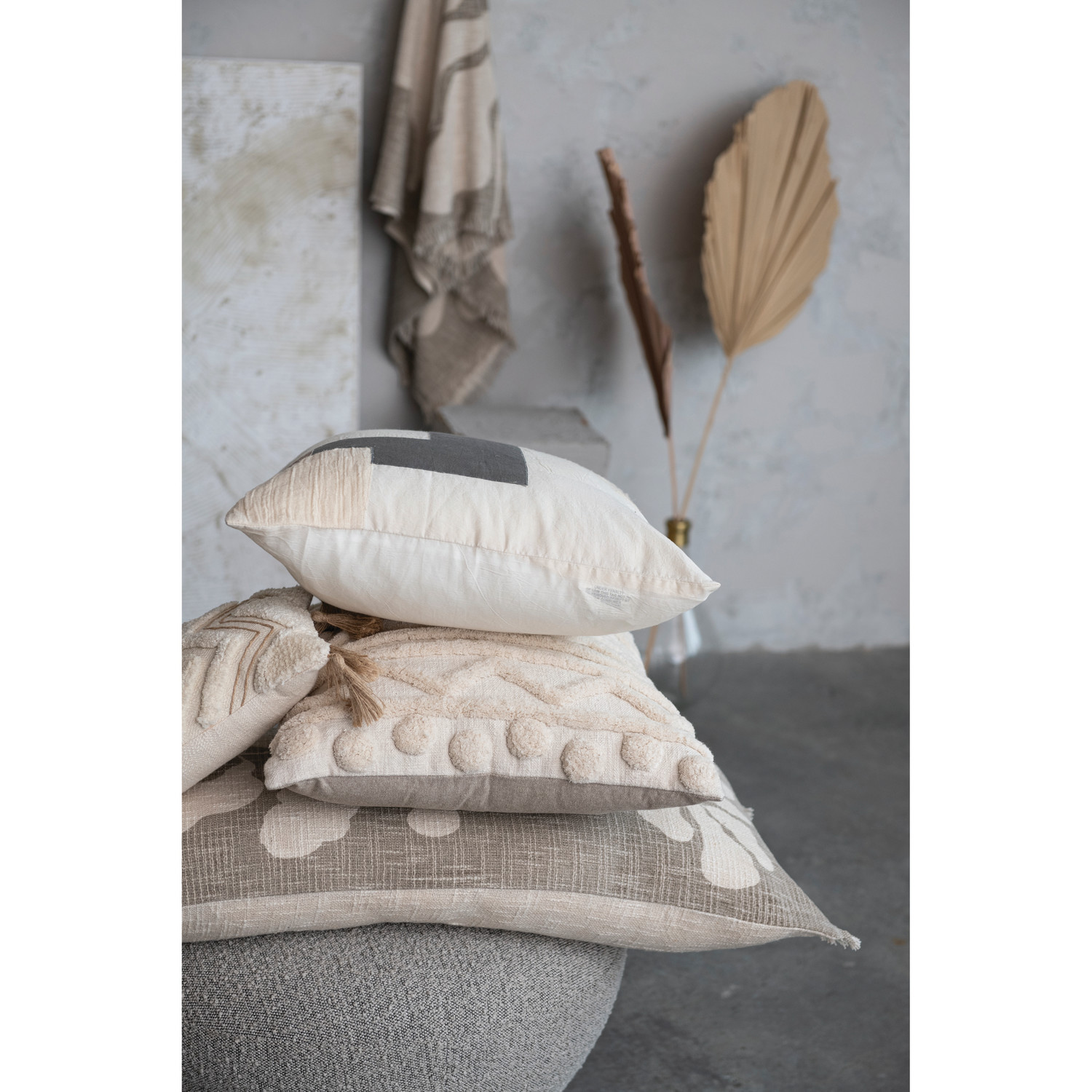 20" Square Cotton & Linen Patchwork Pillow, Polyester Fill