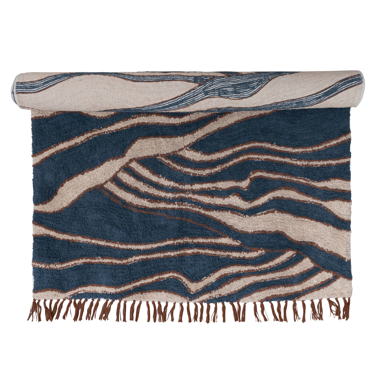 Cotton Tufted Rug w/ Wave Design & Fringe