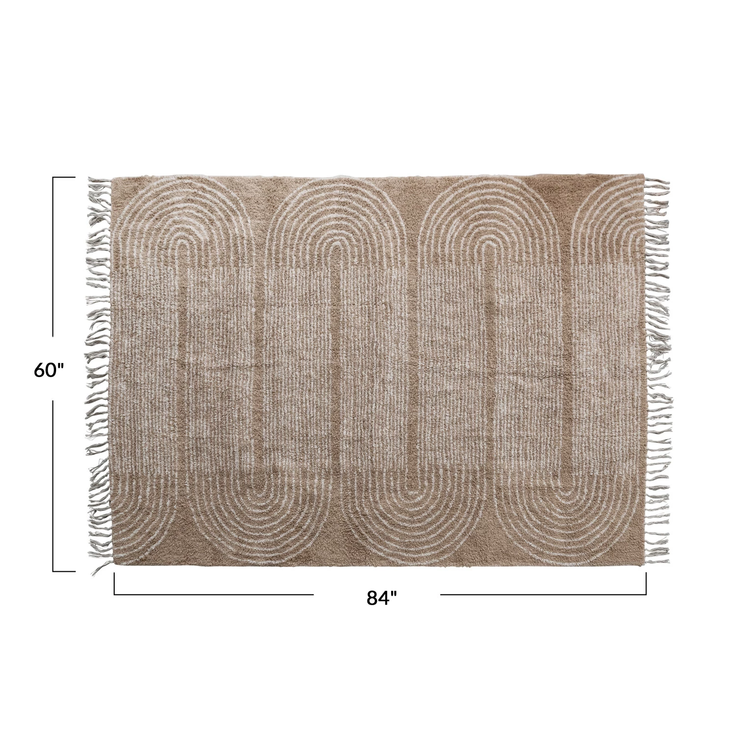 Catalog Name: 5' x 7' Cotton Tufted Rug w/ Cut Pattern & Fringe, Tan Color & Beige