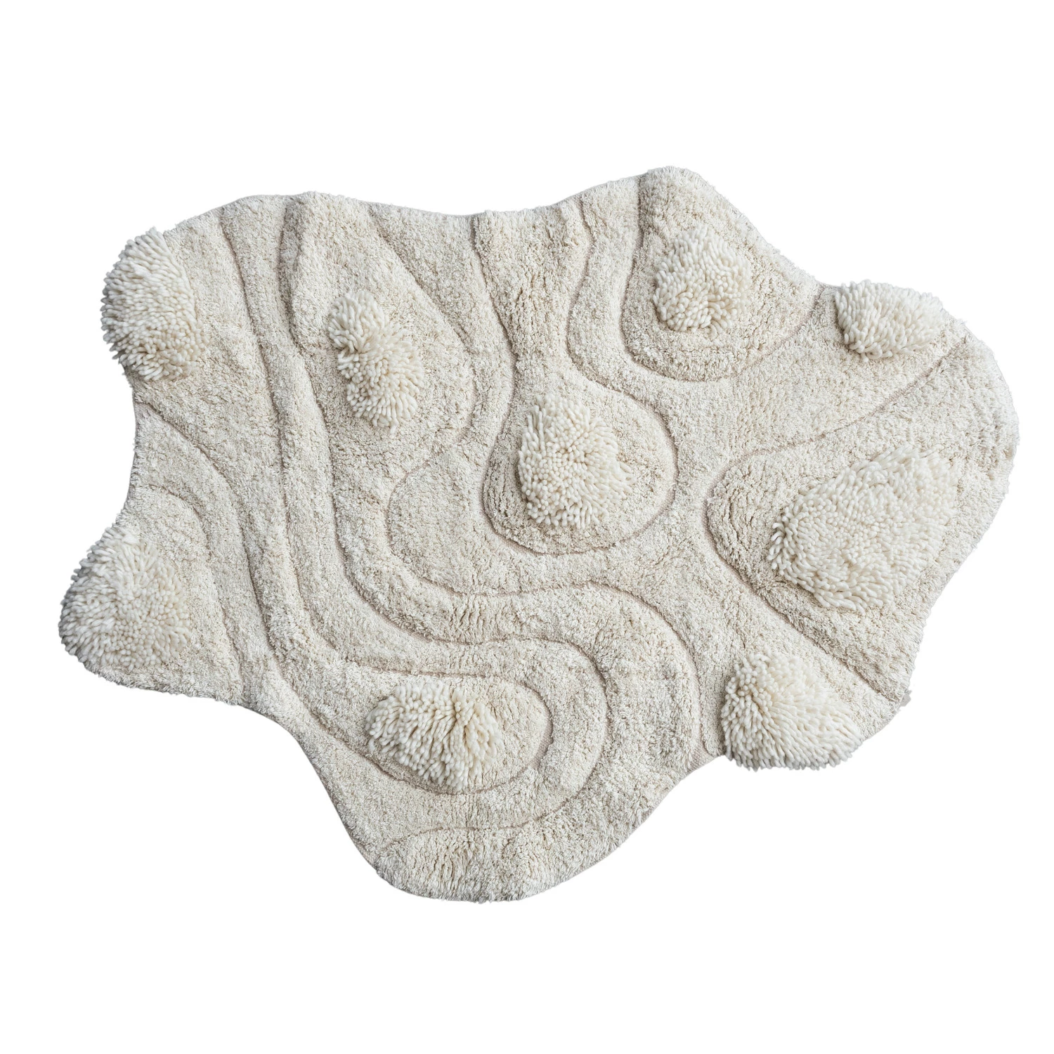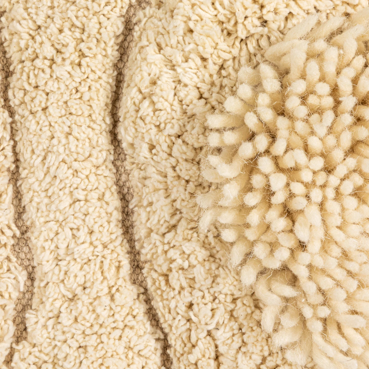 Catalog Name: 3' x 3'8" Cotton & Wool Tufted Organic Shaped Rug w/ Design & Varying Pile Height, Natural