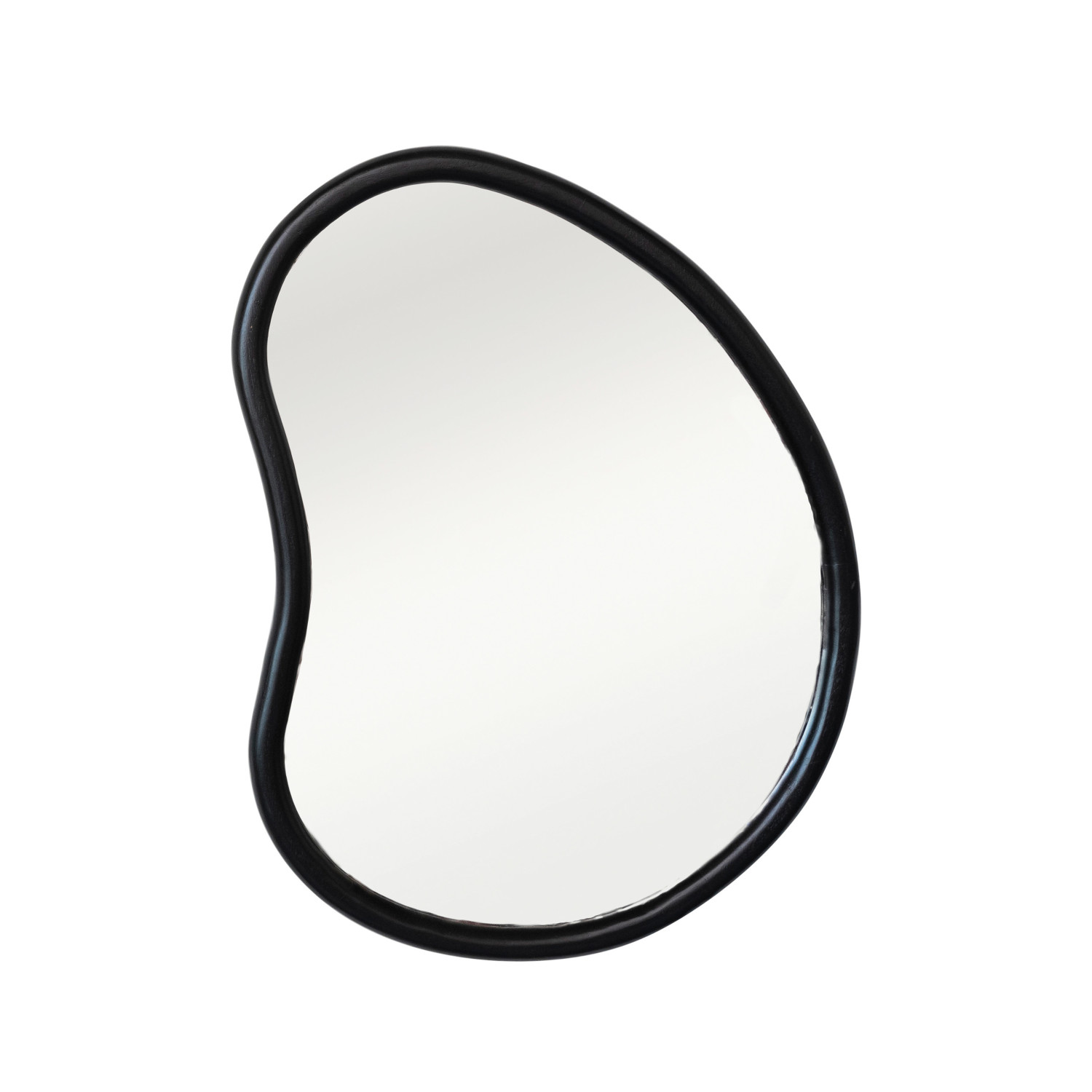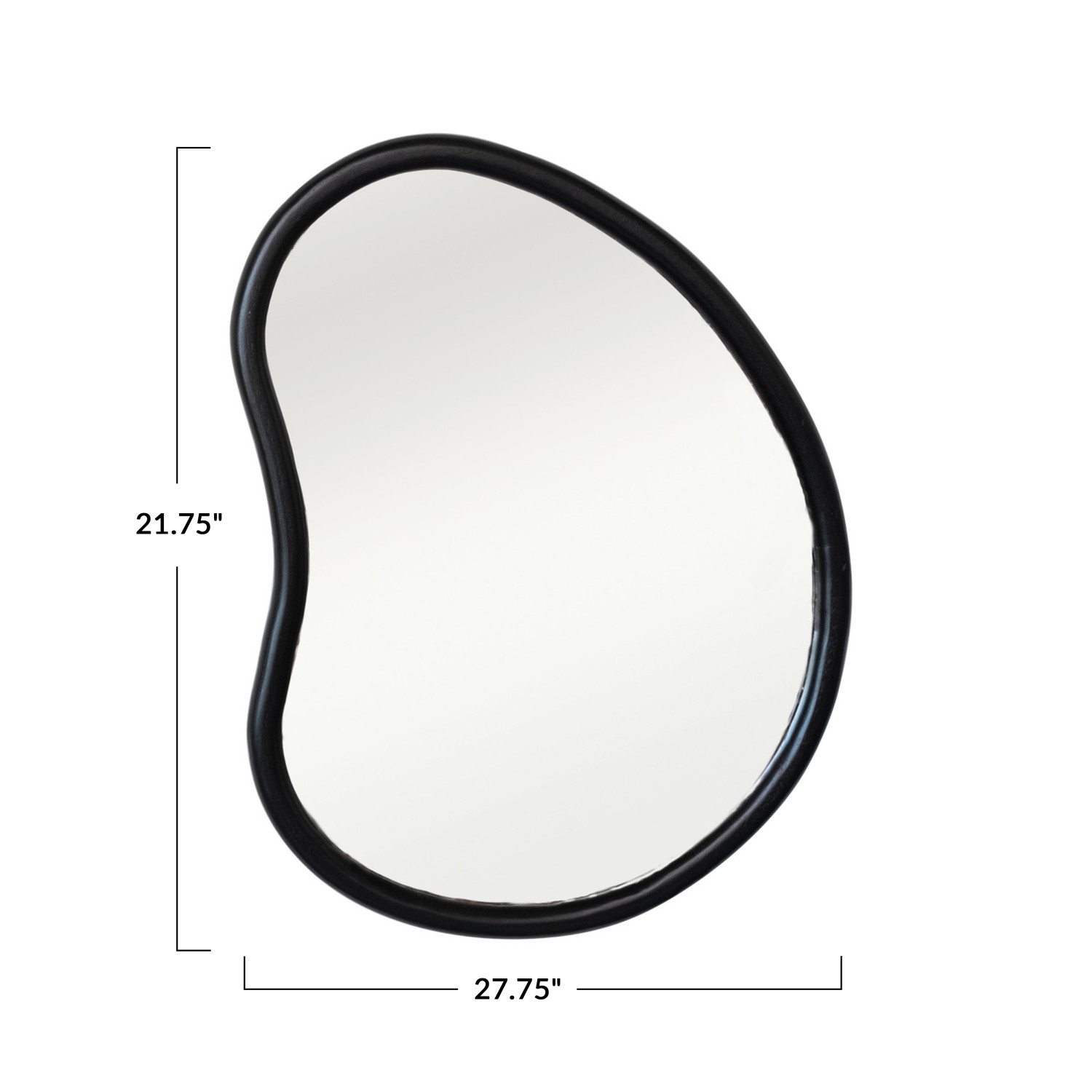 Catalog Name: 27-3/4"W x 21-3/4"H Mango Wood Framed Organic Shaped Wall Mirror, Black