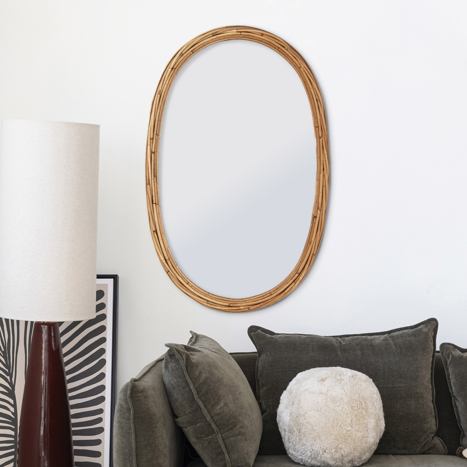 Rattan Wrapped Framed Wall Mirror (Hangs Vertically & Horizontally)