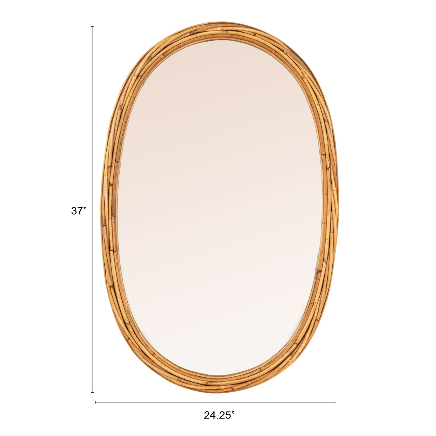 Catalog Name: 24-1/4"W x 37"H MDF & Rattan Wrapped Framed Wall Mirror, Natural (Hangs Vertically & Horizontally)