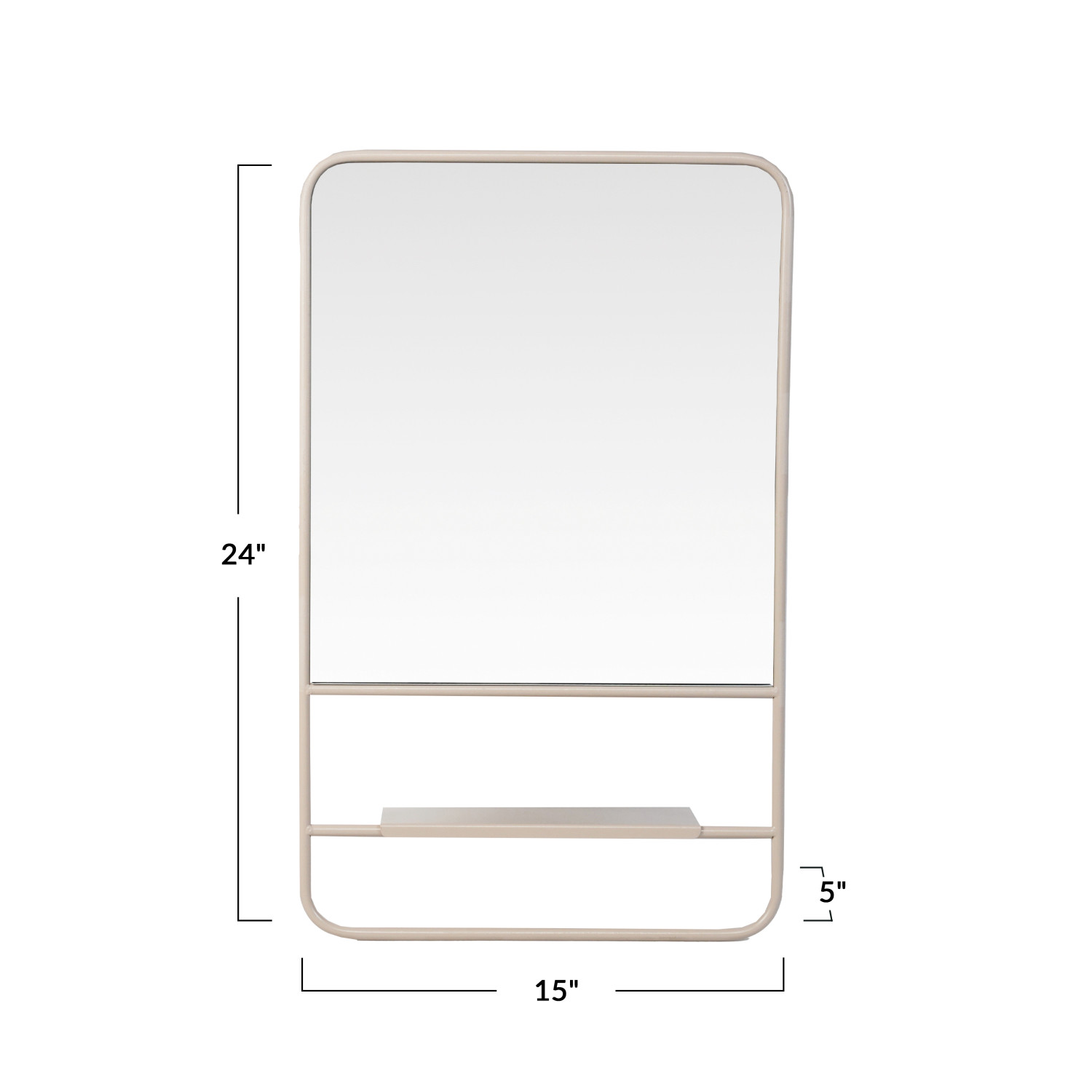 Metal Wall Mirror w/ 3 Shelves, Blush Color