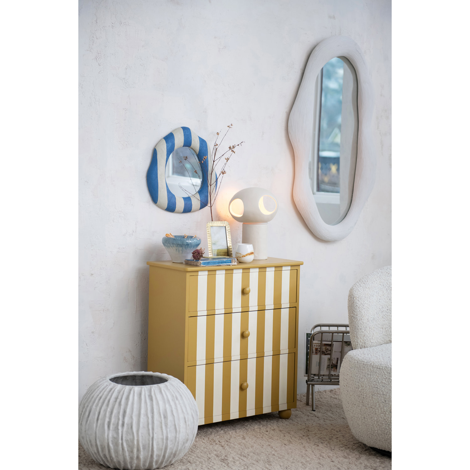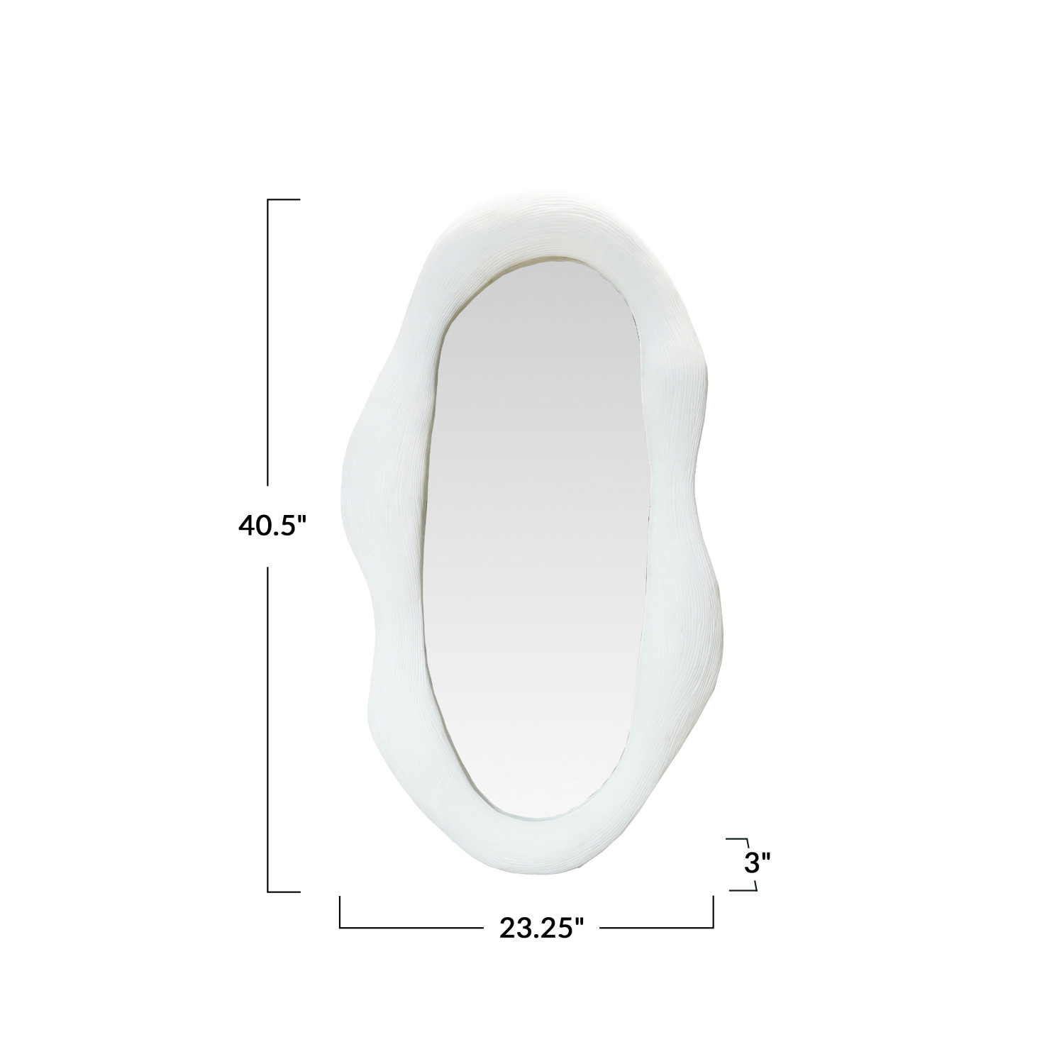 Catalog Name: 23-1/4"W x 3"D x 40-1/2"H Resin Organic Shaped Wall Mirror w/ Debossed Lines, Volcano Finish, White, Truck Ship (Hangs Vertically & Horizontally)