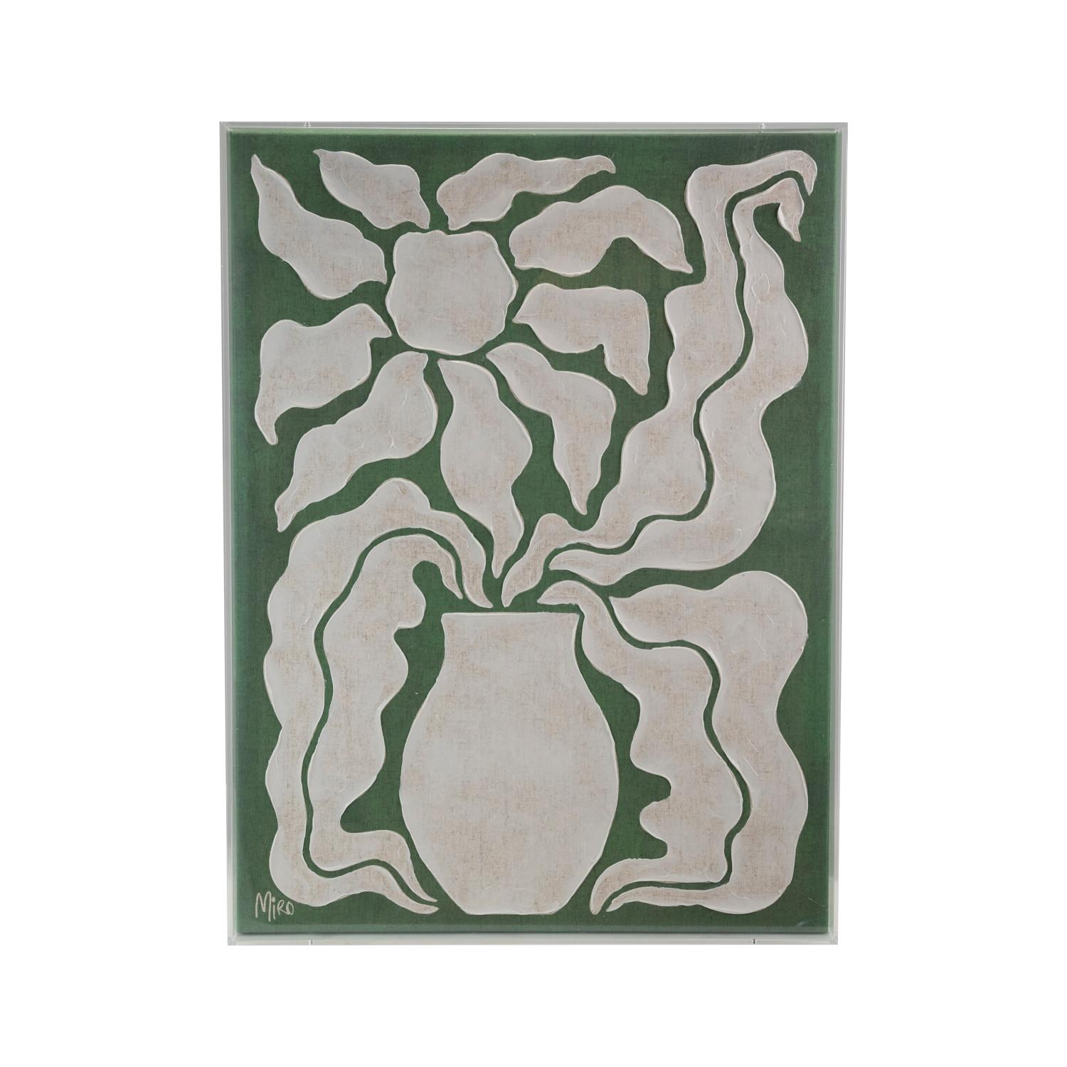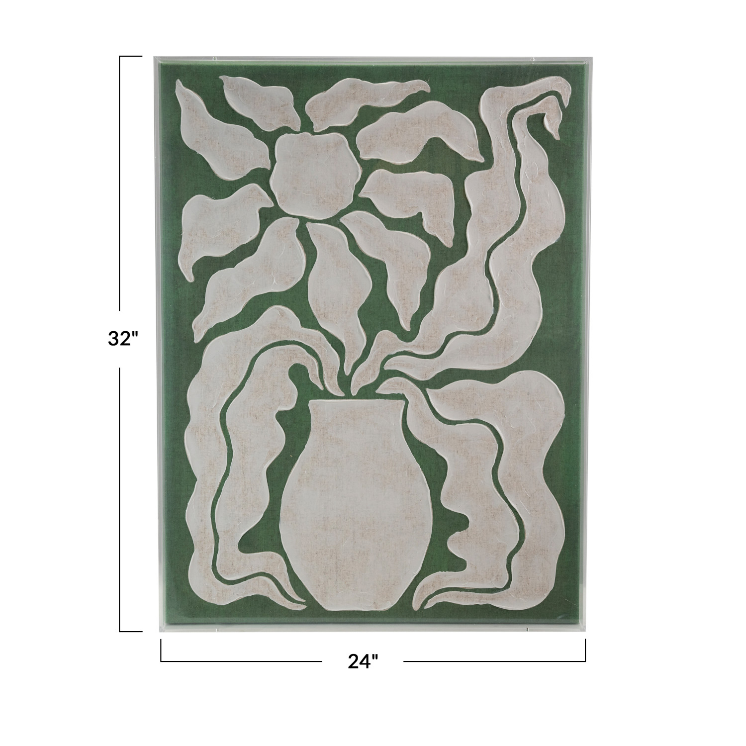 Catalog Name: 24"W x 32"H Hand-Painted Acrylic Box Framed Canvas Wall Décor w/ Flower in Vase, Green & White, Truck Ship