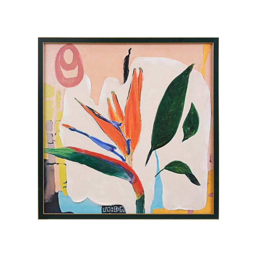 Hand-Painted Moulded Composite Framed Wall Decor with Bird of Paradise