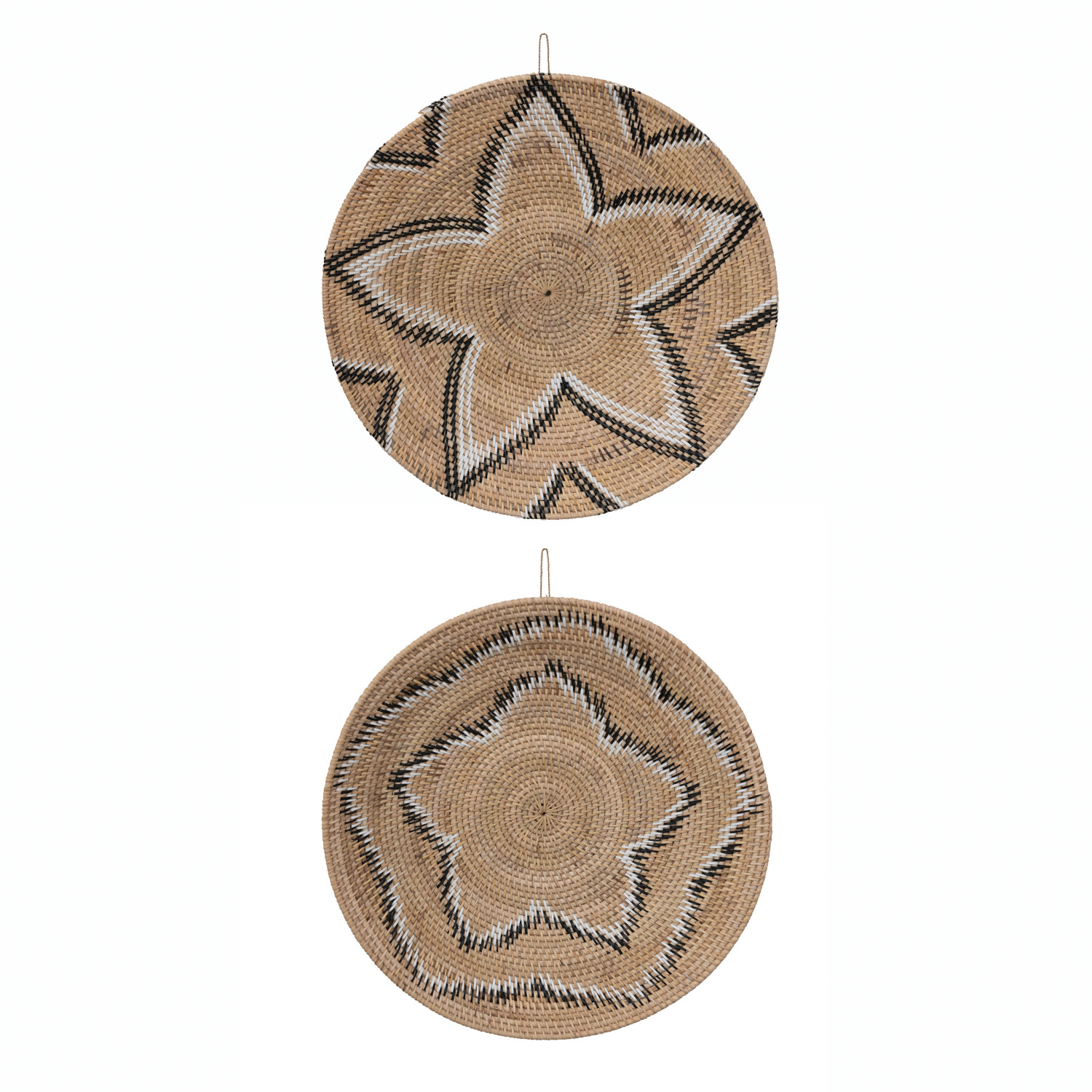 Decorative Hand-Woven Rattan Wall Basket w/ Design, 2 Styles
