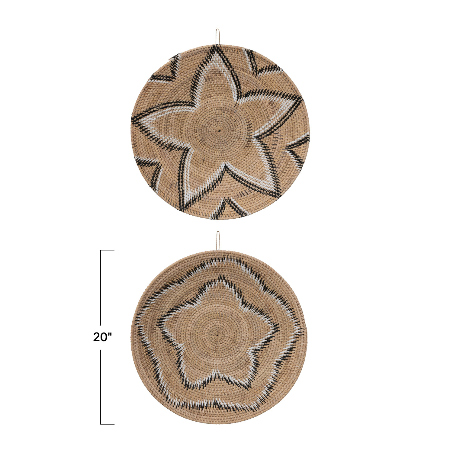 Catalog Name: 20" Round Decorative Hand-Woven Rattan Wall Basket w/ Design, Multi Color, 2 Styles